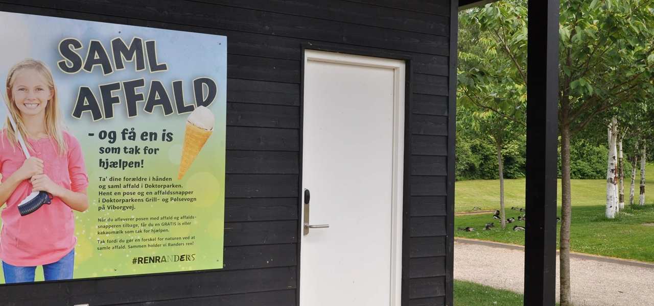 Nu har børnefamilier mulighed for at samle dåser og papir i Doktorparken og efterfølgende få en is som tak for hjælpen. Randers Kommune sætter fokus på henkastet affald i børnehøjde med et nyt initiativ i samarbejde med Doktorparkens Grill & Pølsevogn på Viborgvej.