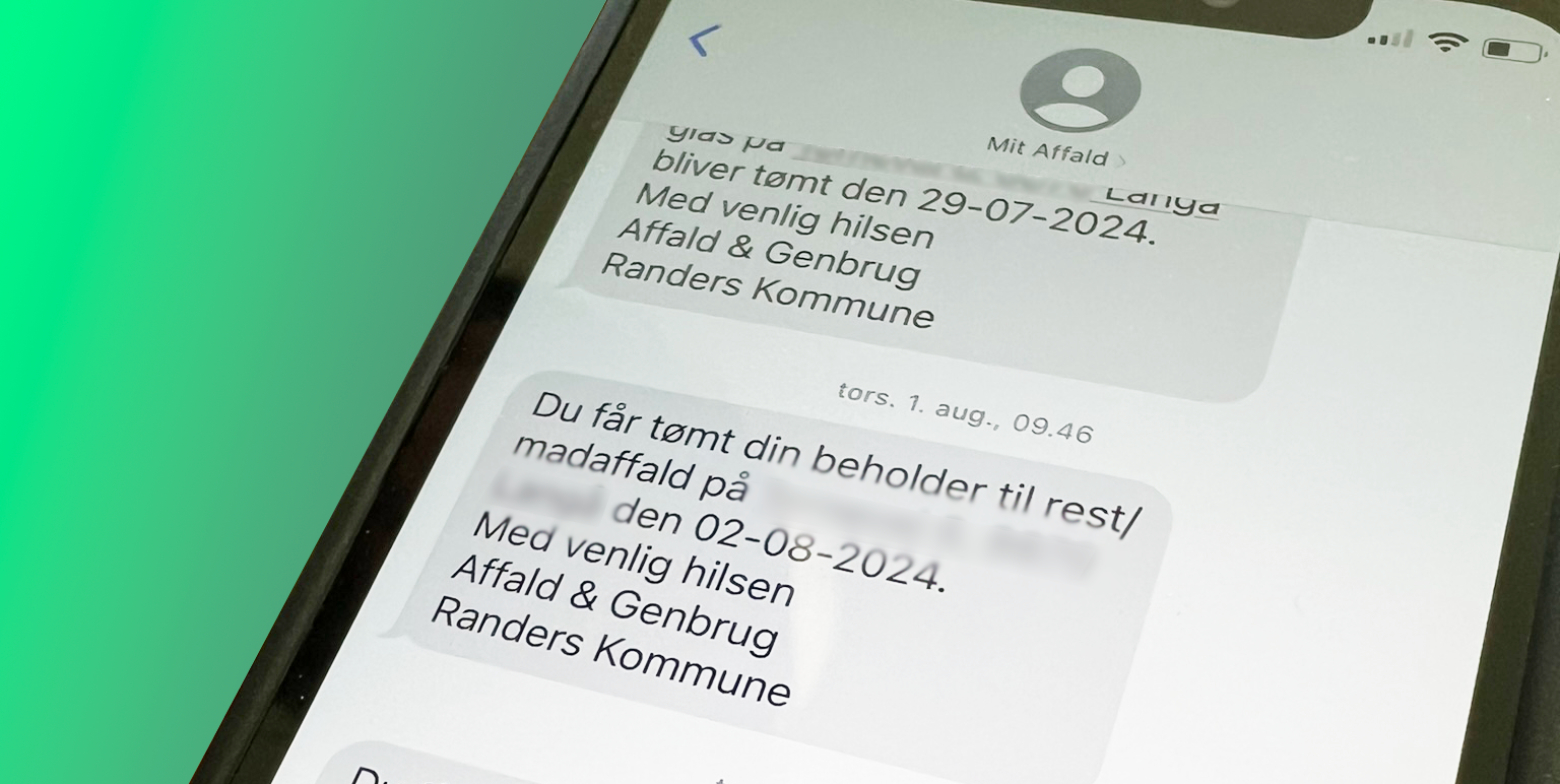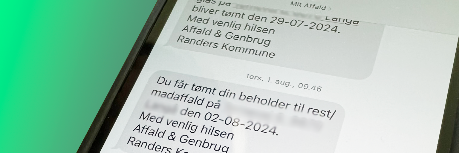 Plejer du at modtage en sms før vi tømmer din skraldespand? Så kan det desværre ske, at den ikke kommer pga. fejl i systemet.