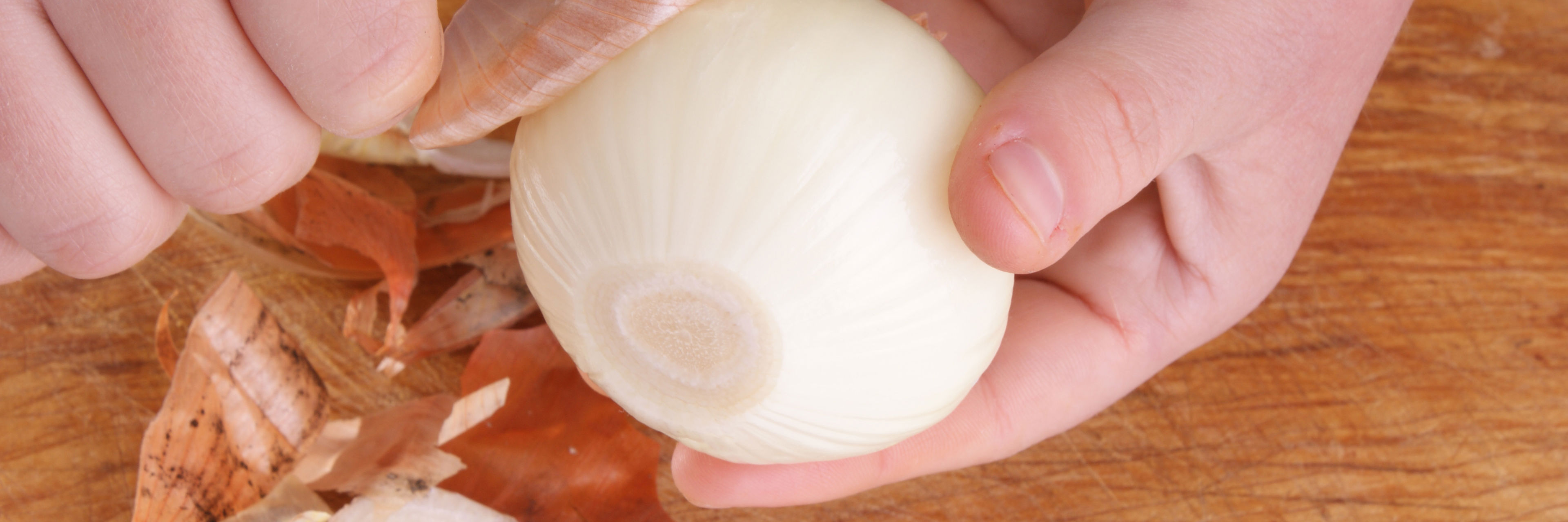 Skallerne kan også overhældes med kogende vand og sødes med lidt honning til en varmende løg-te.