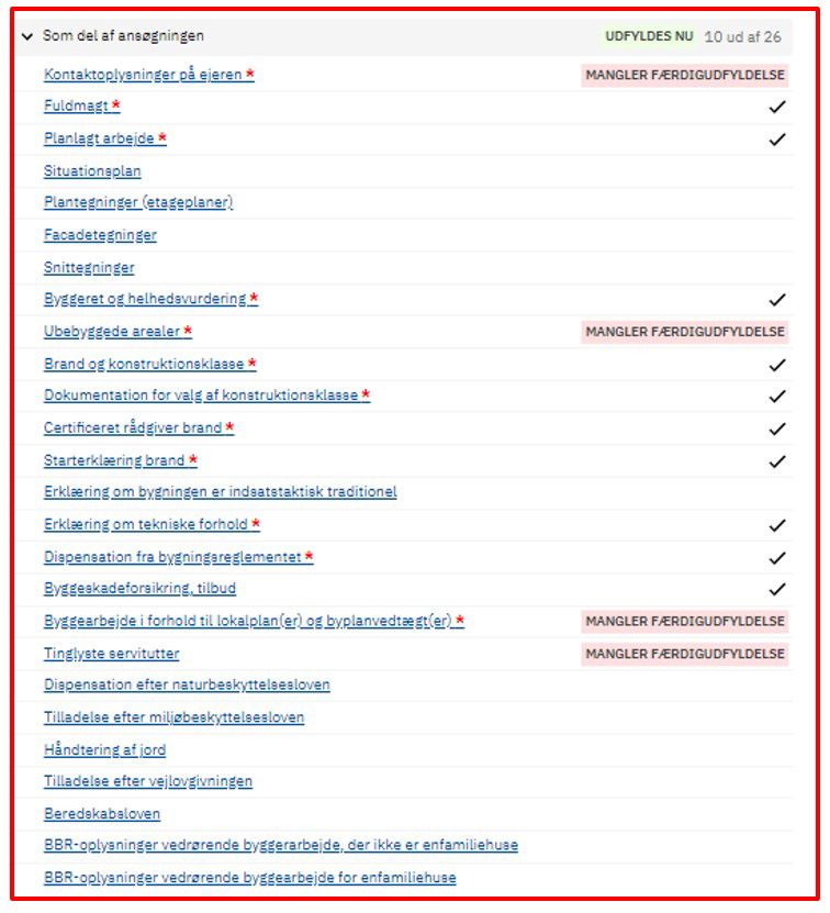Felter med rød stjerne * skal udfyldes, ellers kan du ikke indsende. Hvis du mener, at et obligatorisk felt ikke er relevant, skriver du i feltet "Ikke relevant fordi …".