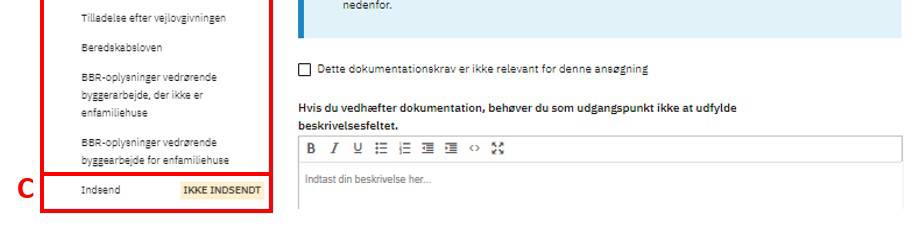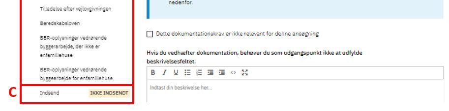 Når du er færdig med udfyldelsen, trykker du Indsend (C) samme sted som før.