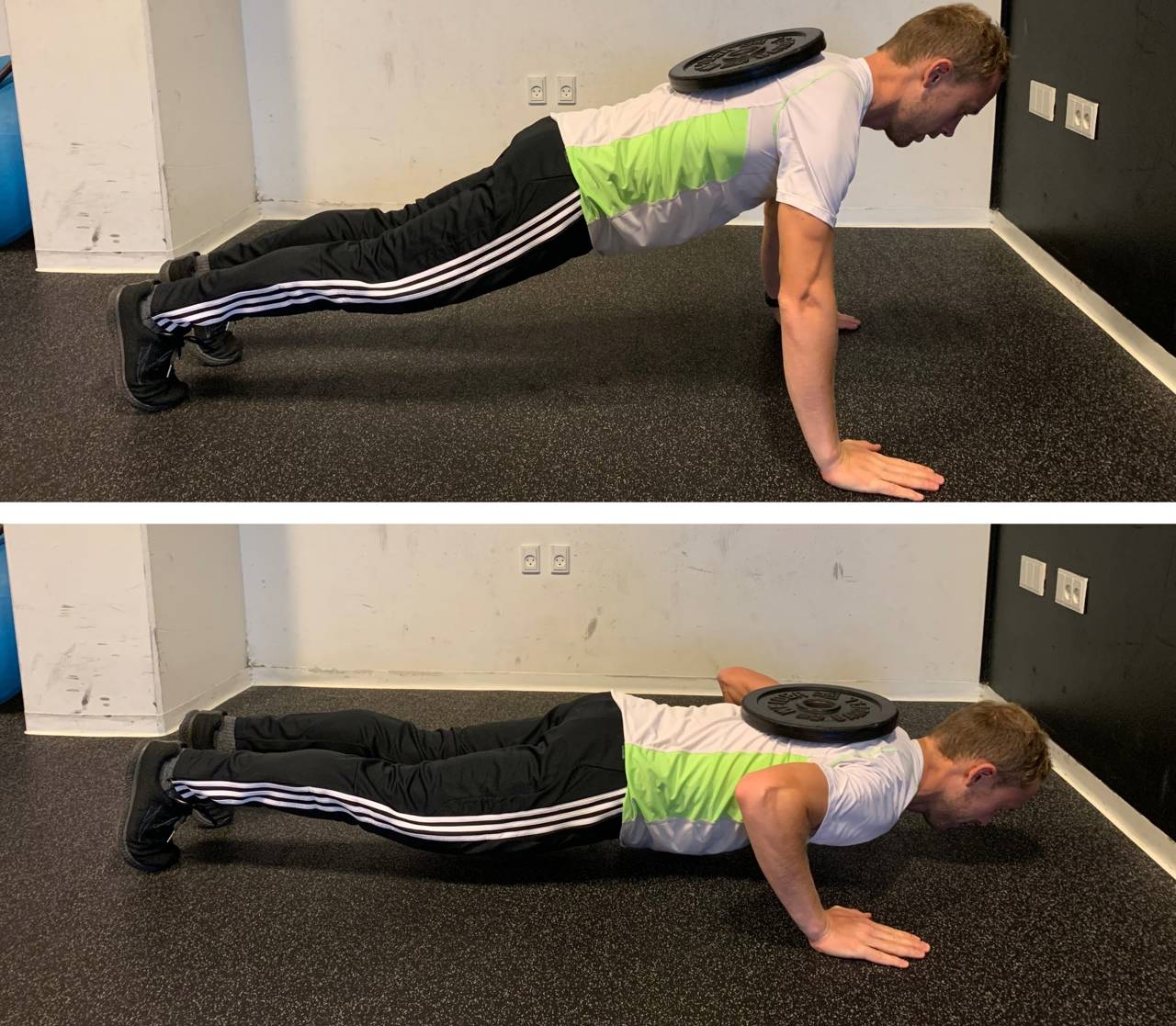 En anden typisk fejl er at komme til lave øvelsen med fokus på at få hagen eller næsen ned til gulvet. Du skal i stedet tænke, at det er brystkassen, der skal sænkes til gulvet, og beholde hovedet "tilbage i den lige linje".