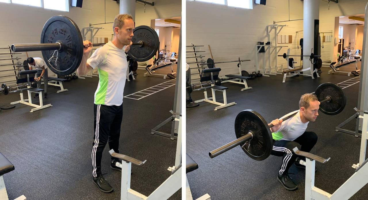 Squat er en velkendt øvelse for mange og består grundlæggende af at bøje ned i benene og gå op igen. Næsten hele kroppen er aktiv i en vis grad af den grund, at man typisk ser, at der kan løftes relativt mange kg i øvelsen. Derfor er det ikke kun benmuskulaturen, som skal arbejde, men også overkroppen i form af stabiliserende arbejde, da vægten ligger på skuldrene.