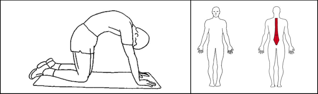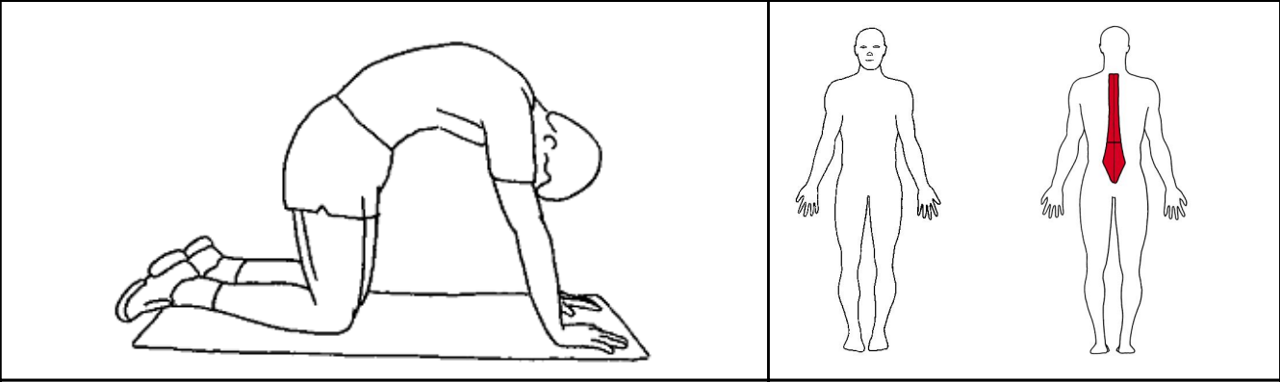 Stå på alle fire. Sveje og skyde ryg. Kig mod navlen og kig mod loftet.