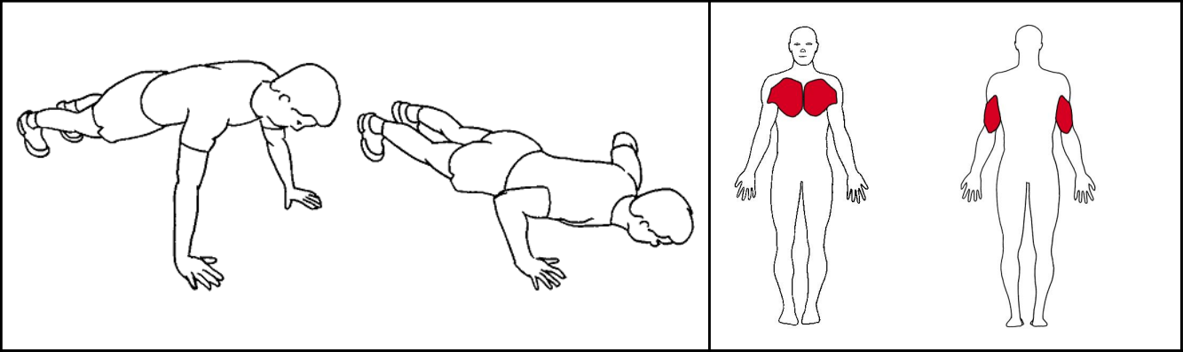 Hvil på hænder og fødder med udstrakt og fikseret krop. Hænderne placeres med mere end en skulderbreddes afstand. Sænk overkroppen ned mod gulvet og pres op igen, uden at knække i hoften. Øvelsen kan også laves på knæene eller op af en væg.