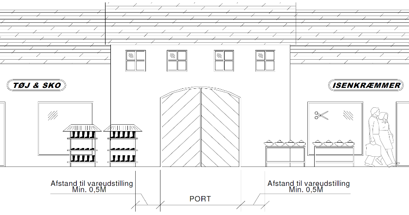 - Vareudstillingsreoler, borde m.v. skal være i god kvalitet og være tilpasset eksisterende gademiljø.