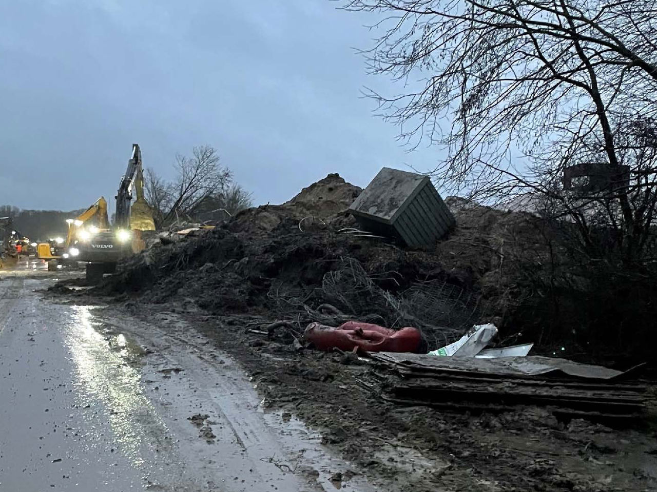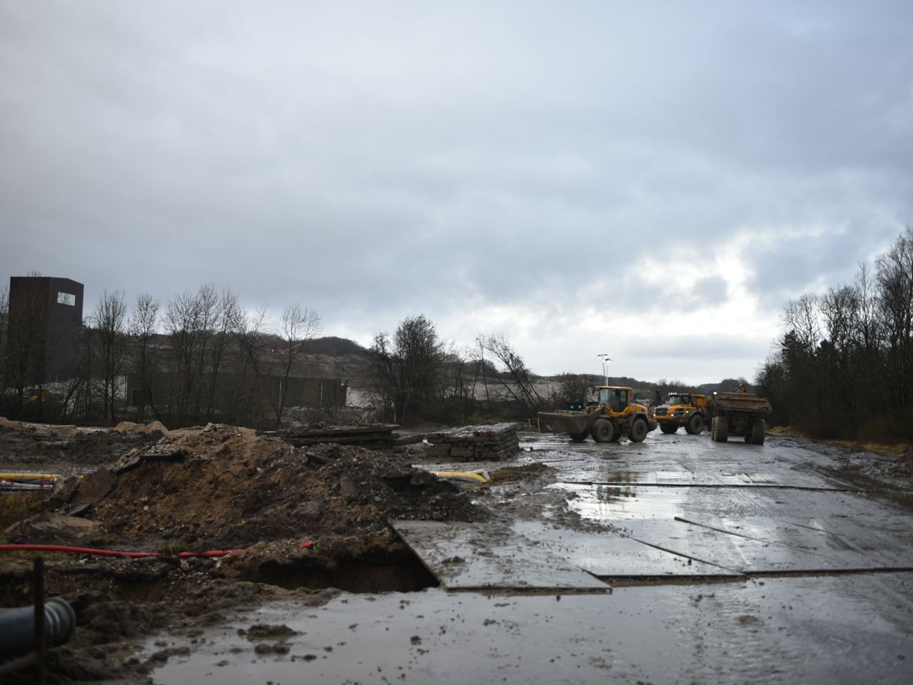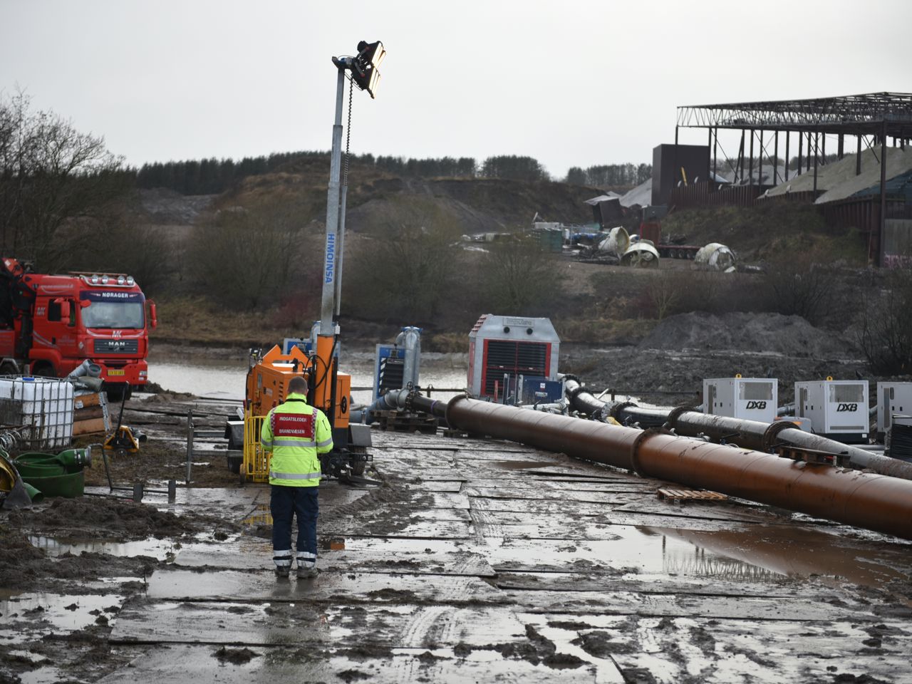Regnvejret skaber flere udfordringer på Nordic Waste skadested