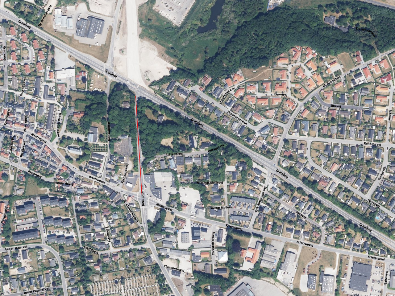Clausholmvej bliver spærret ved Kristrupvej i nordlig retning