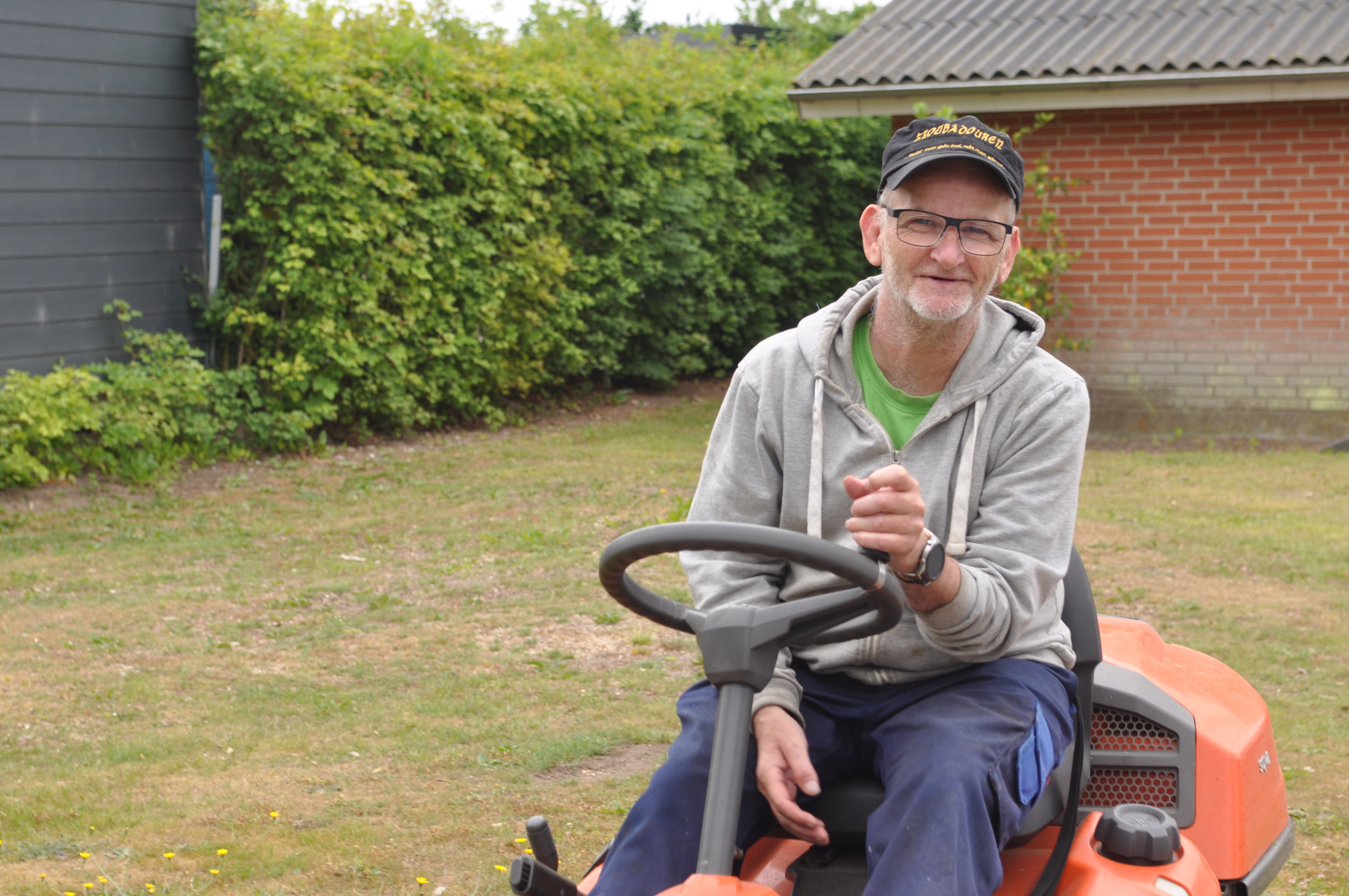 Tirsdag er en ganske særlig dag for 53-årige Peter Chalmer Rasmussen, beboer på Spentrup Ældrecenter. Her hjælper han nemlig ældrecentrets tekniske servicemedarbejder med forskelligt havearbejde - ofte at slå græs.