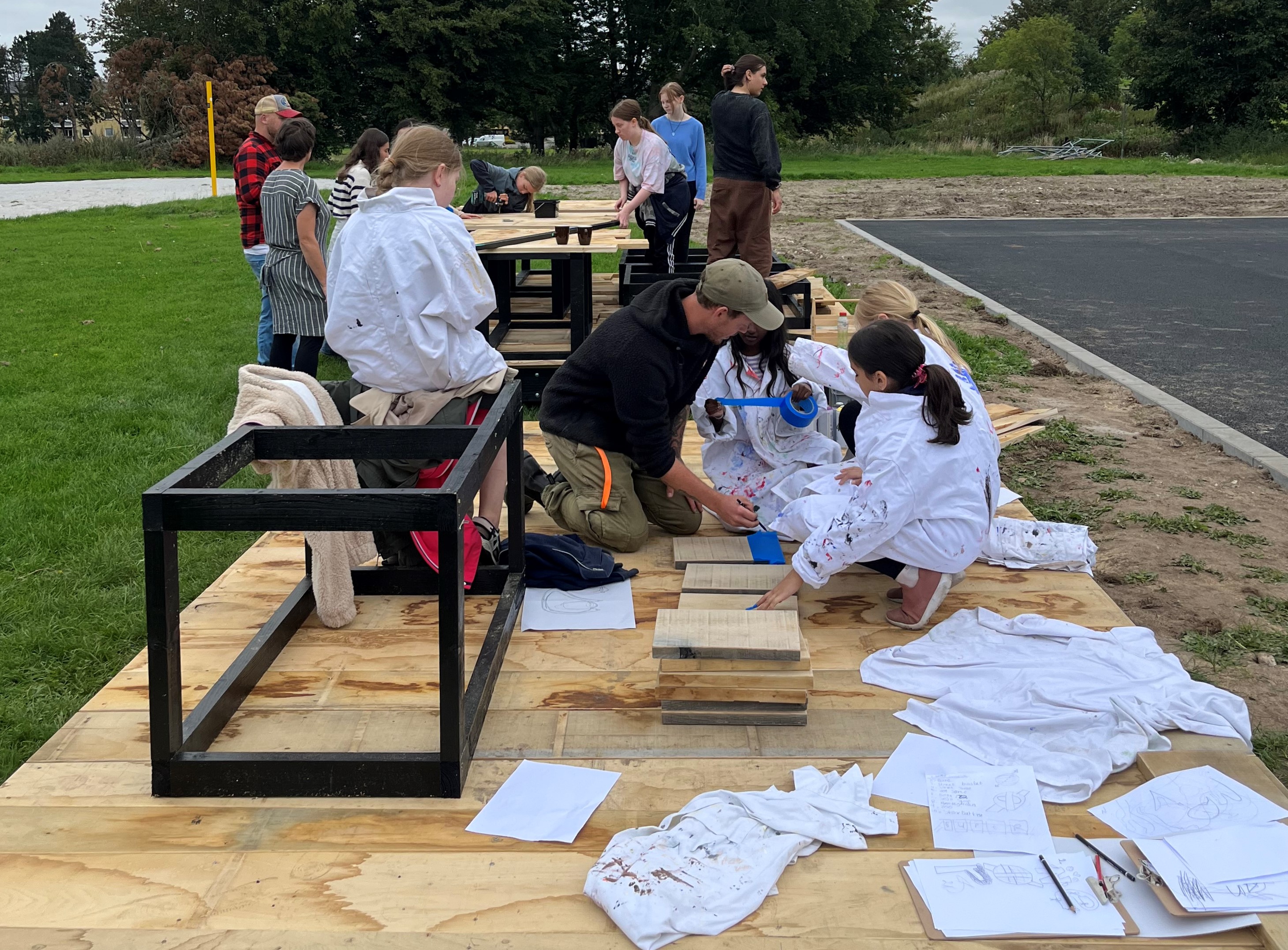Elever bygger opholdsmøbler i Nørrevangsparken