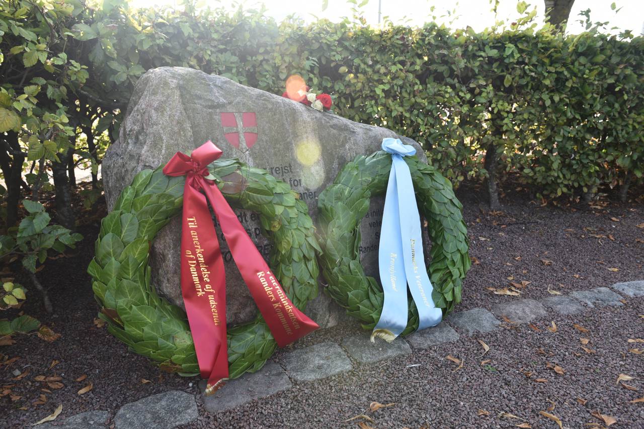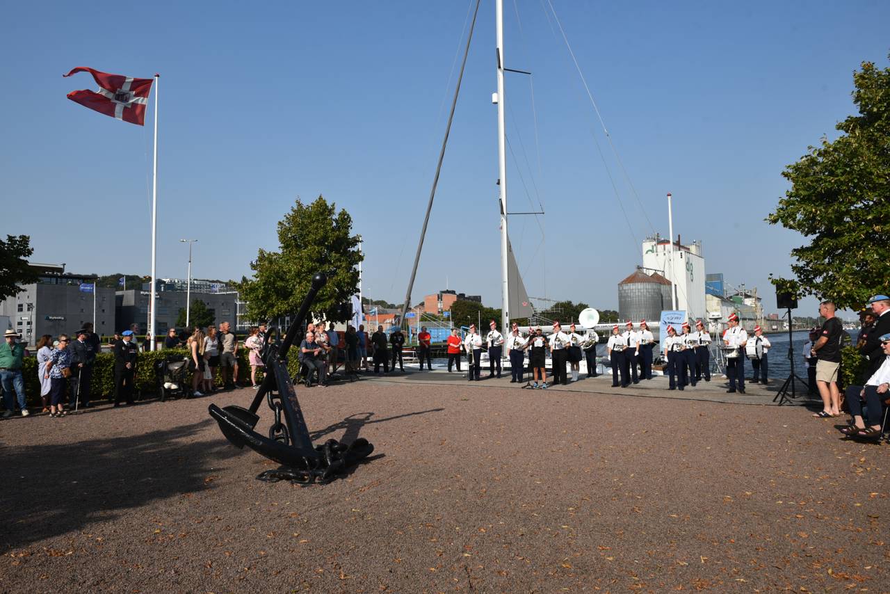 Blæseorkesteret Søndermarken spillede, mens fanekommandoen stod opstillet, og en krans blev nedlagt ved mindestenen for faldne og sårede veteraner.