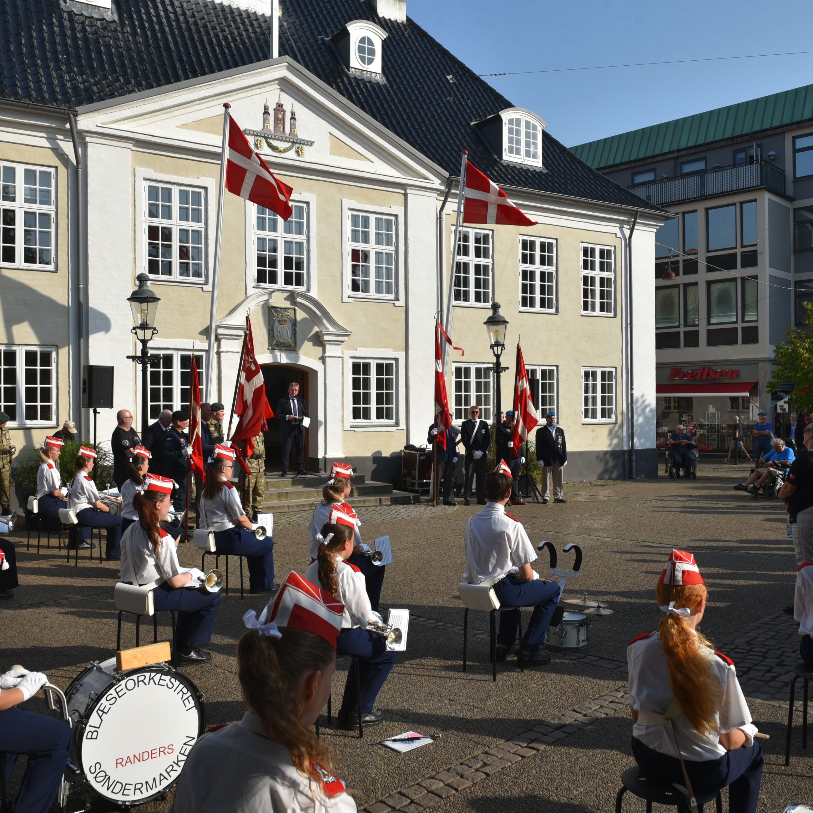 Efter ceremonien ved havnen marcherede deltagerne mod Rådhustorvet, hvor borgmester Torben Hansen i sin tale fremhævede, hvor vigtig dagen er: