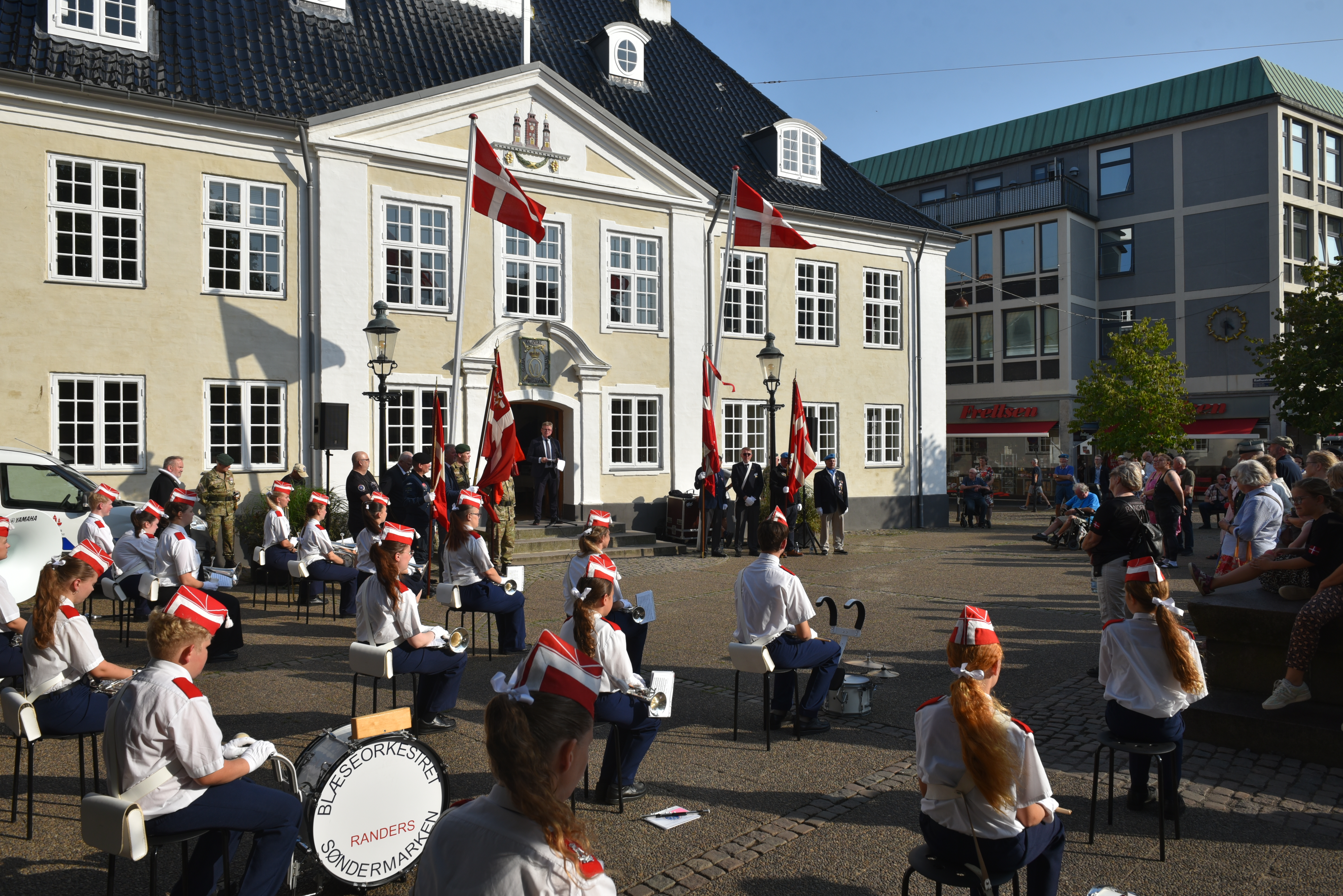 Efter ceremonien ved havnen marcherede deltagerne mod Rådhustorvet, hvor borgmester Torben Hansen i sin tale fremhævede, hvor vigtig dagen er: