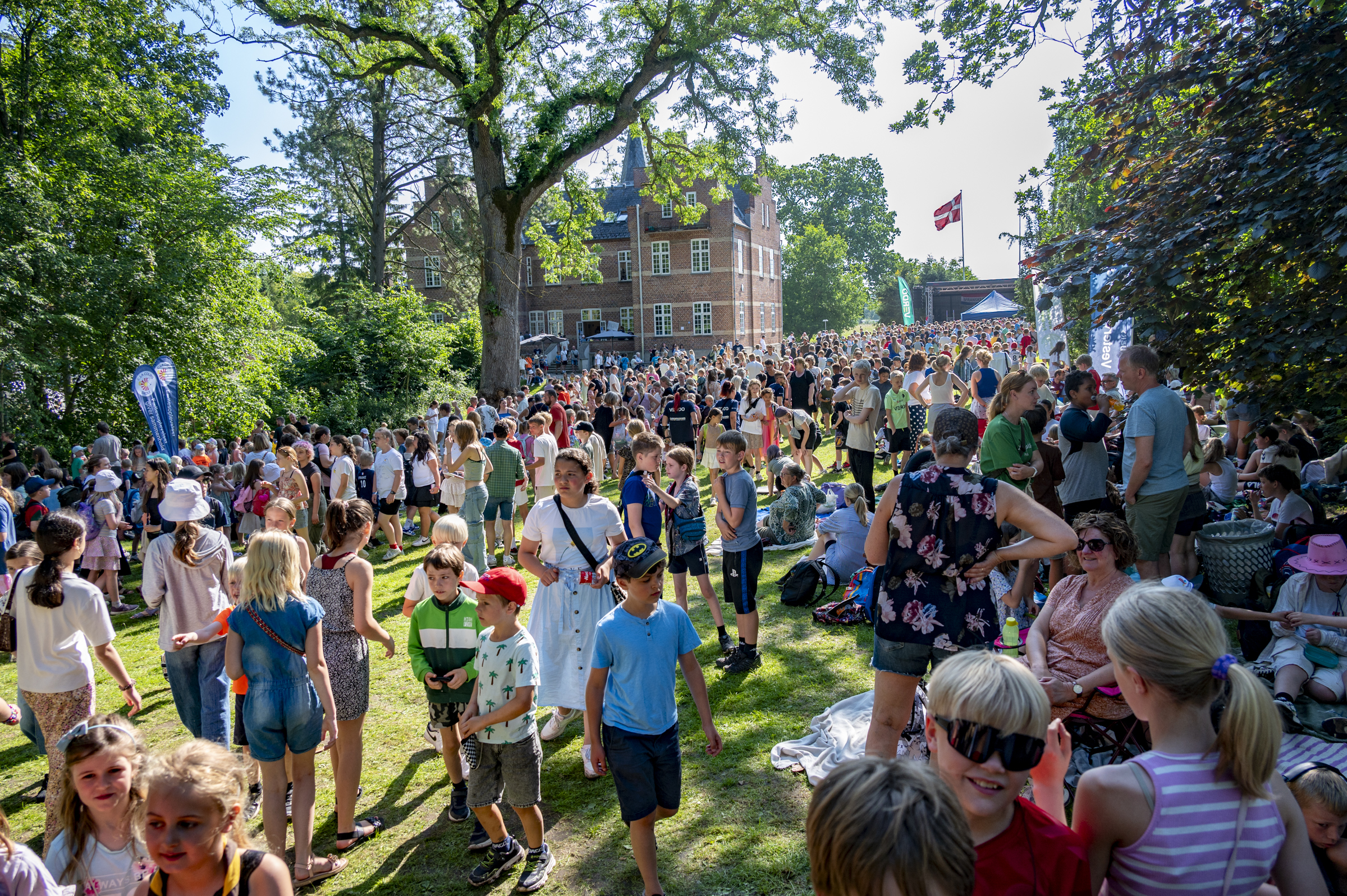 Igen i år kunne skolen samle flere tusinde af byens skoleelever til en fantastisk dag under sommersolen. Siden 1992 har Oust Møllerock sendt byens skoleelever fra 0. – 5. klasse afsted på sommerferie med et brag af børnefest. Og i år var selvfølgelig ingen undtagelse. Festlighederne fandt sted i de flotte omgivelser i skolens park, hvor der blev danset og skrålet med på musikken. Udover de mange musikalske indslag, bød dagen også på forskellige aktiviteter og boder med godt til ganen og maven. Flaget blev hejst og vejrguderne sørgede for fantastisk solskin hele dagen.
