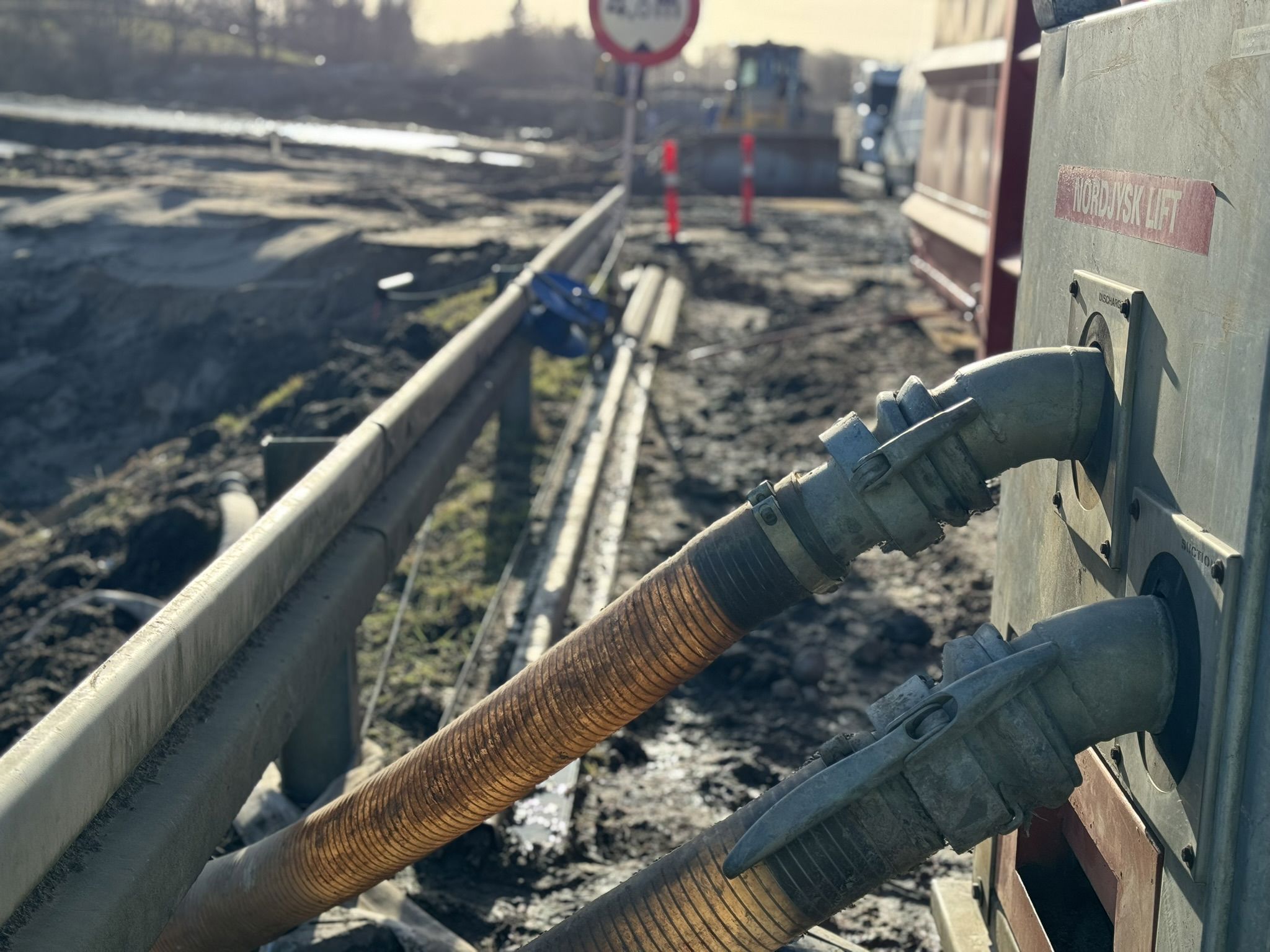Overfladevandet er fortsat den største udfordring på skadesstedet. Men der er ro på situationen og der arbejdes med et ekstra bassin for at sikre, at der er rigeligt med kapacitet.