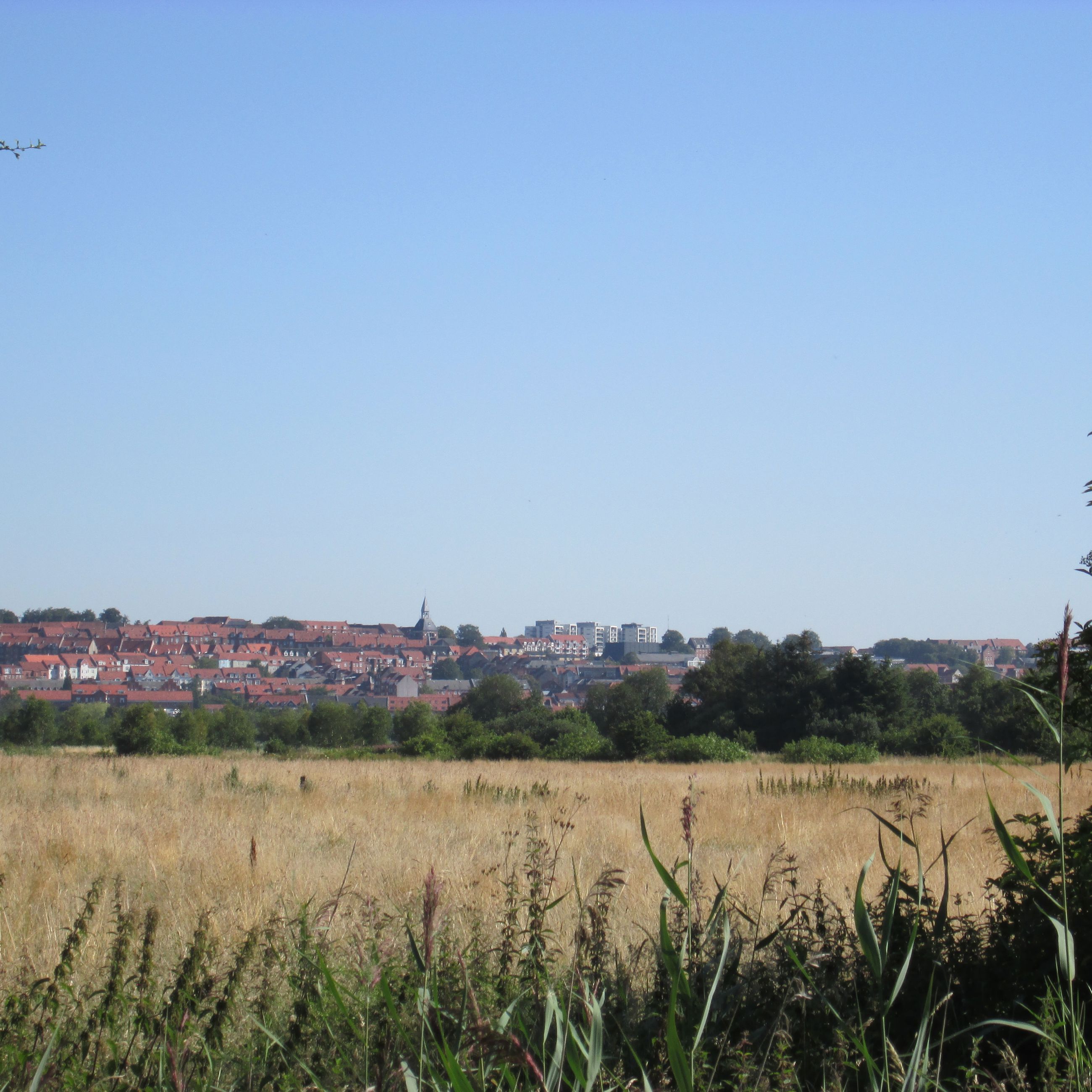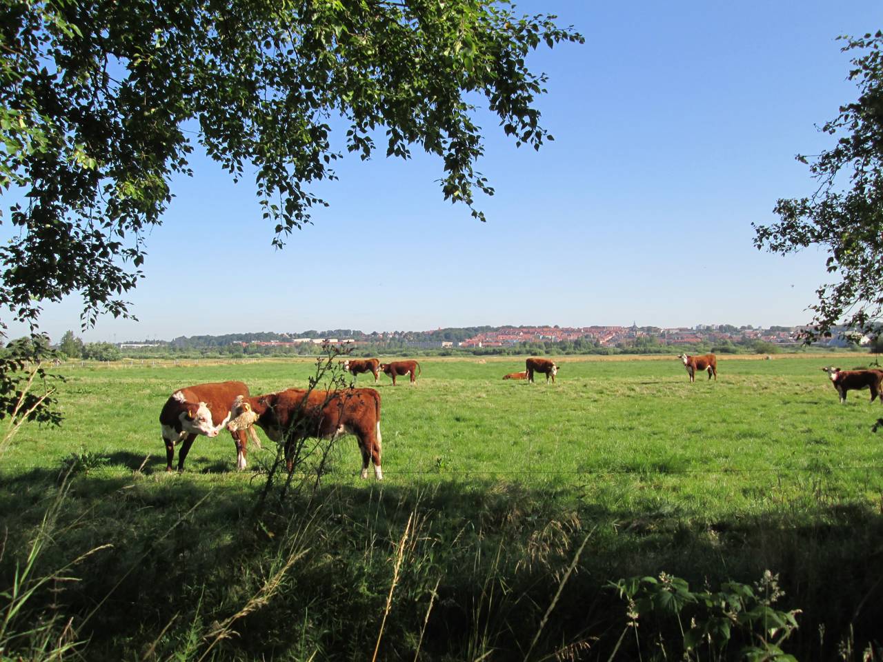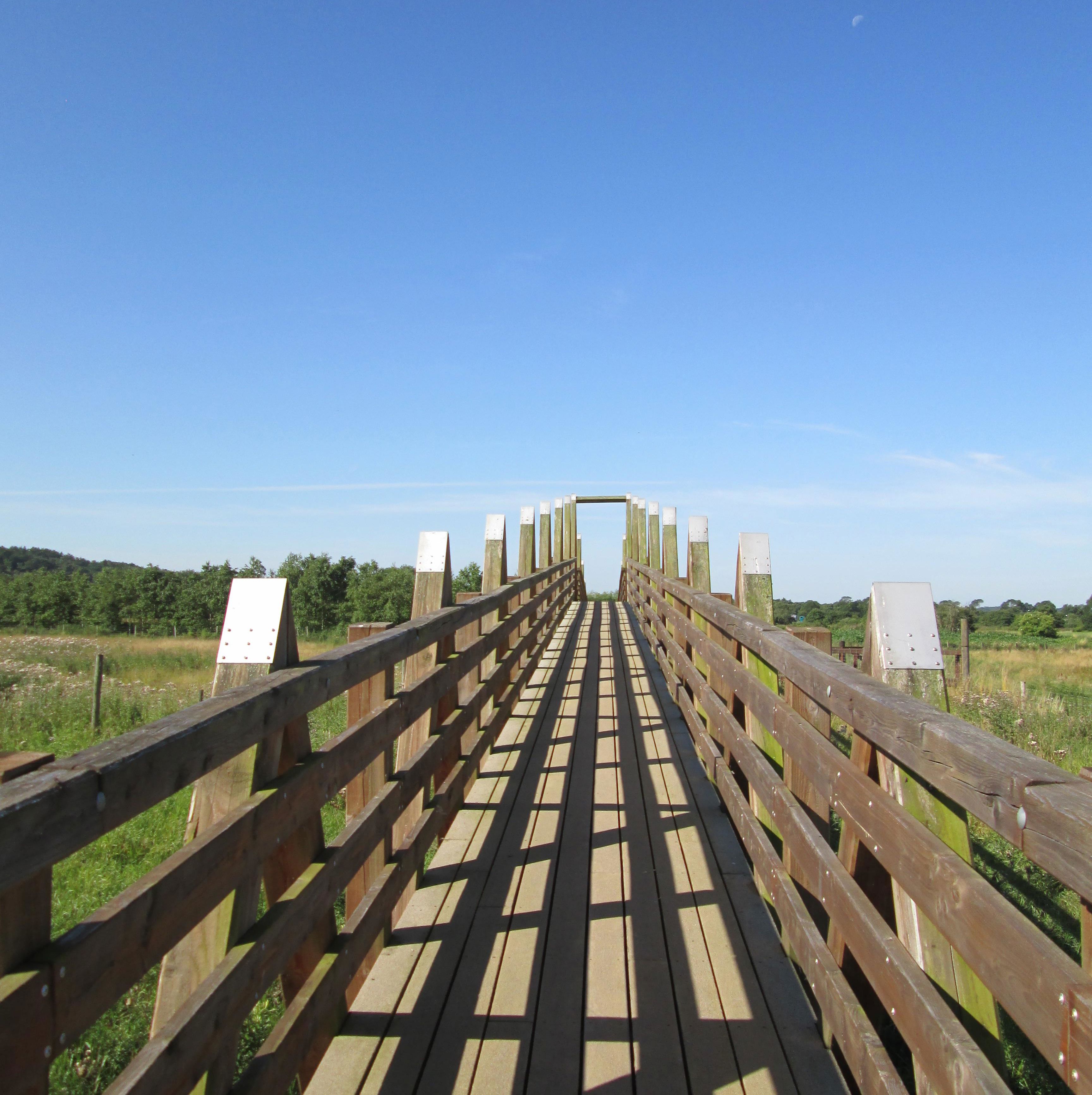 Fra gangbroen ved Randers Regnskov til rastepladsen ved motorvej E45 kan du opleve Vorup Enge på tæt hold på naturstien.