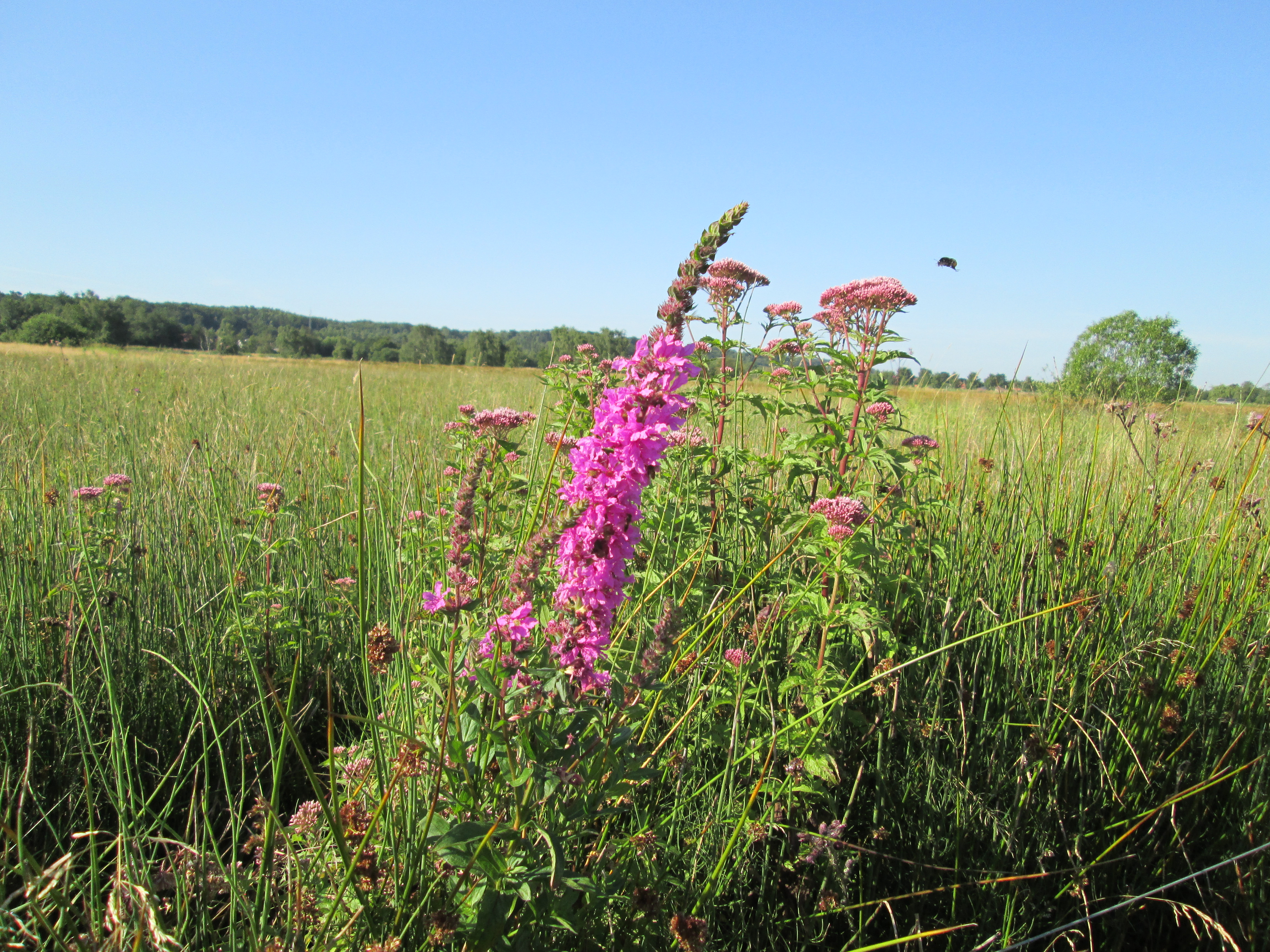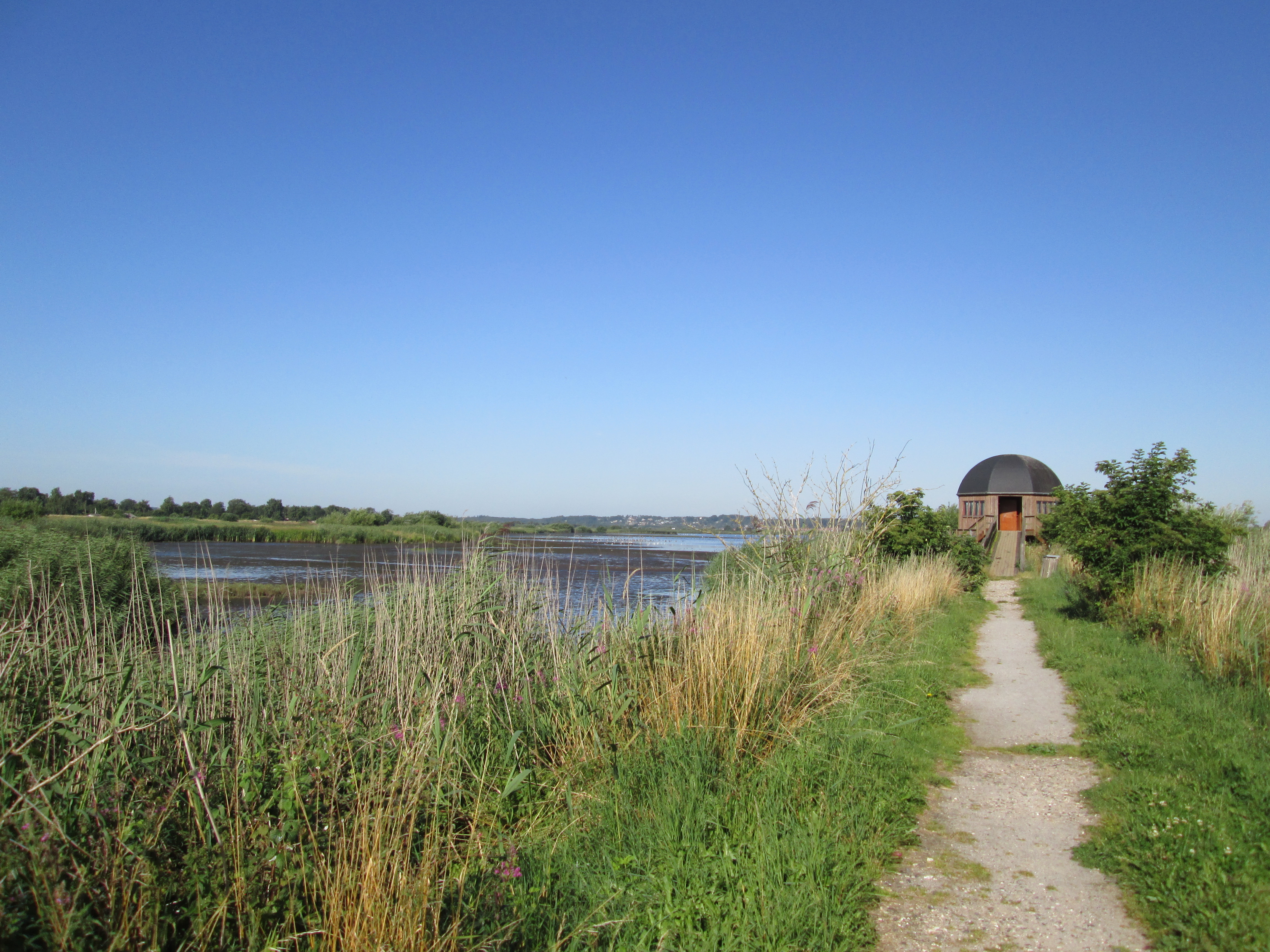 Fra gangbroen ved Randers Regnskov til rastepladsen ved motorvej E45 kan du opleve Vorup Enge på tæt hold på naturstien.