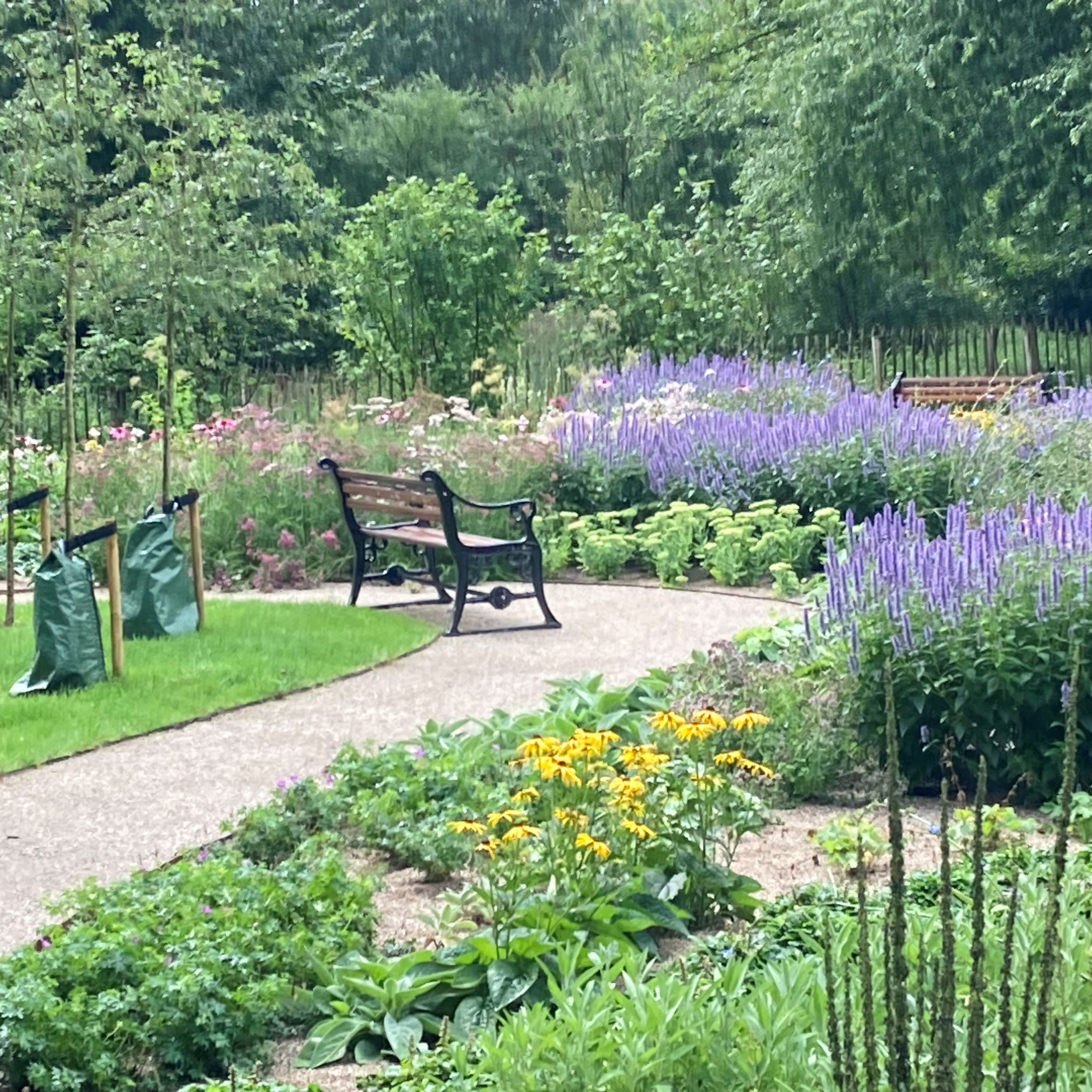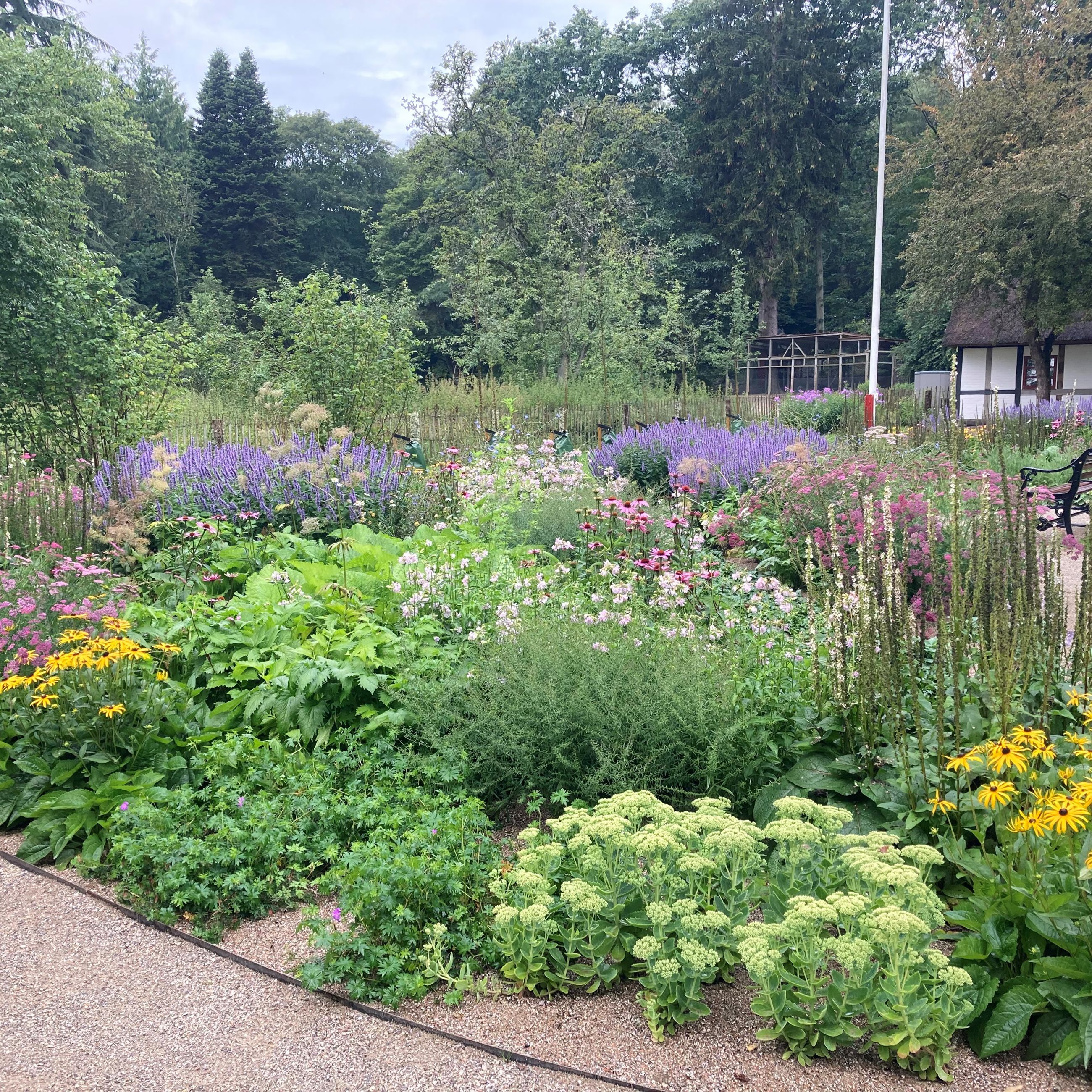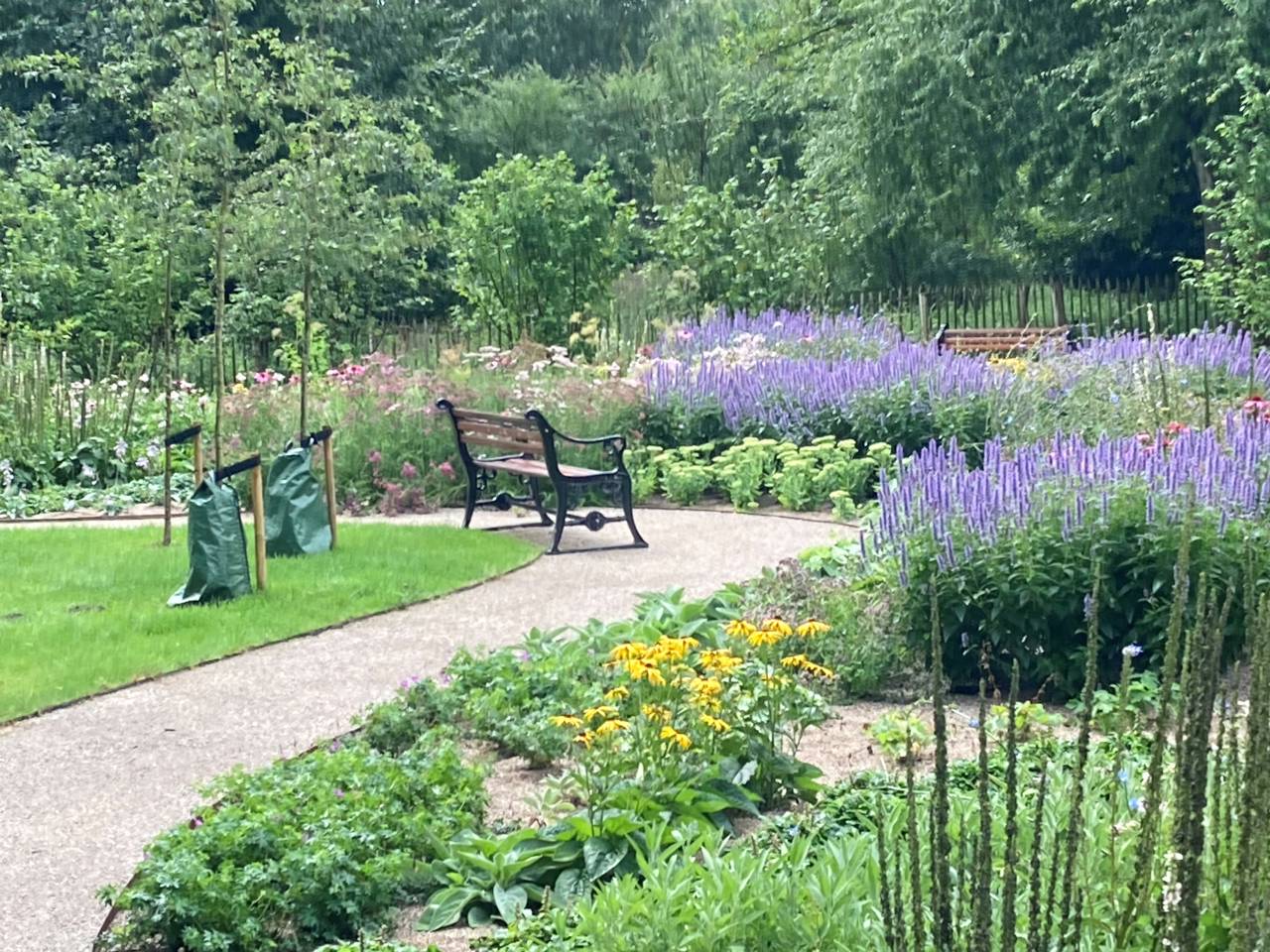 Skovhusets have er renoveret med stauder, græs, træer og en flot snoet sti.