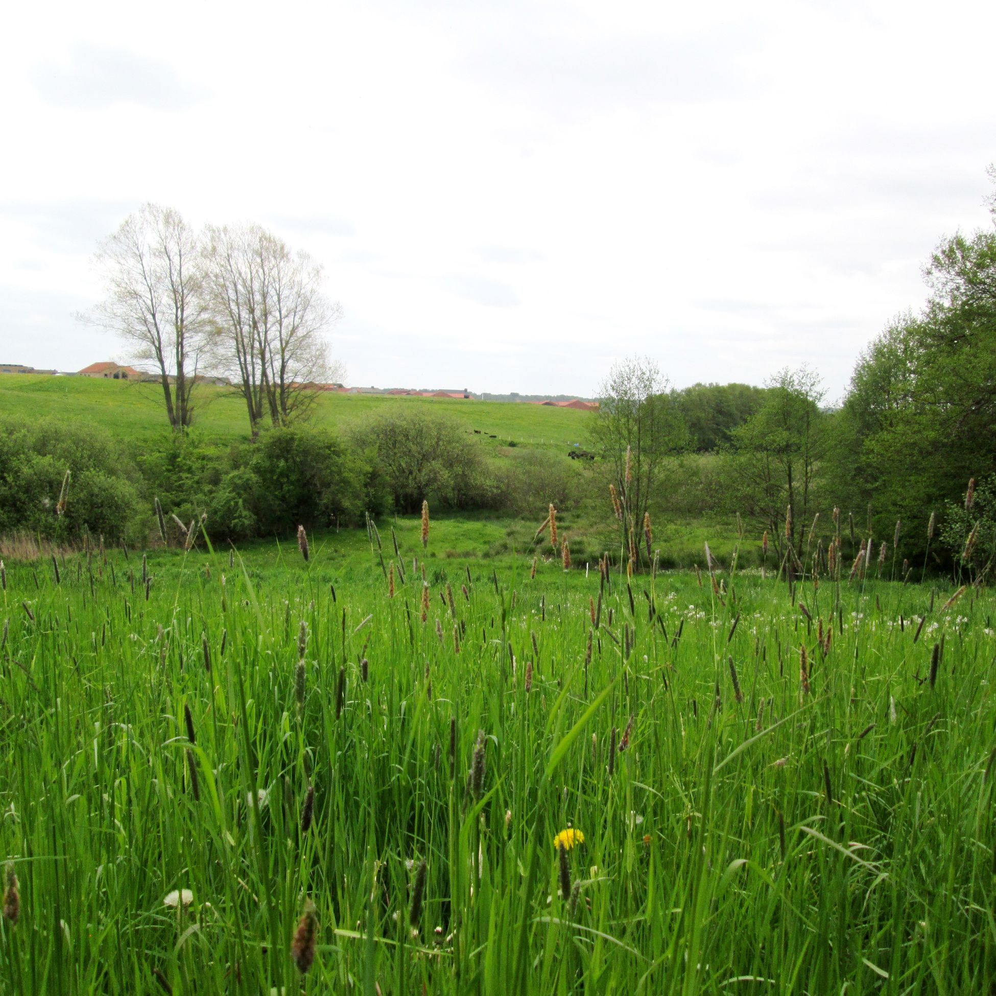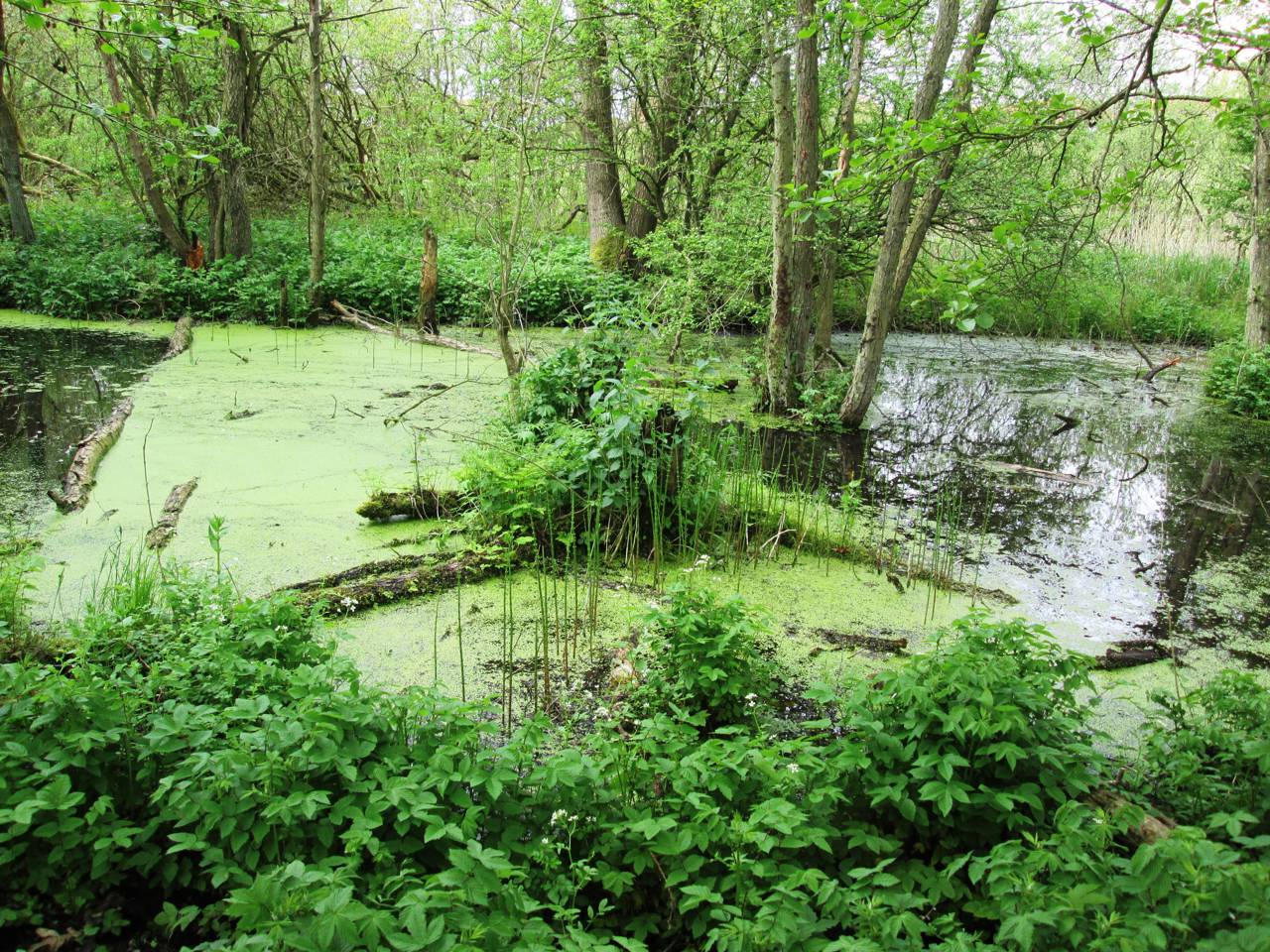 Engområderne afgræsses af kvier om sommeren. Der er flere små søer i området.