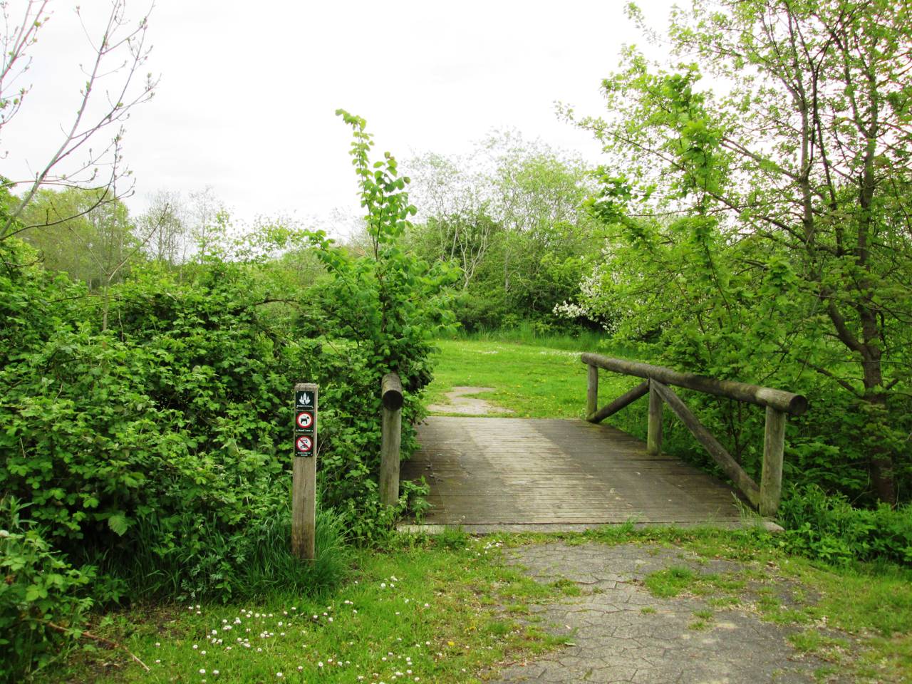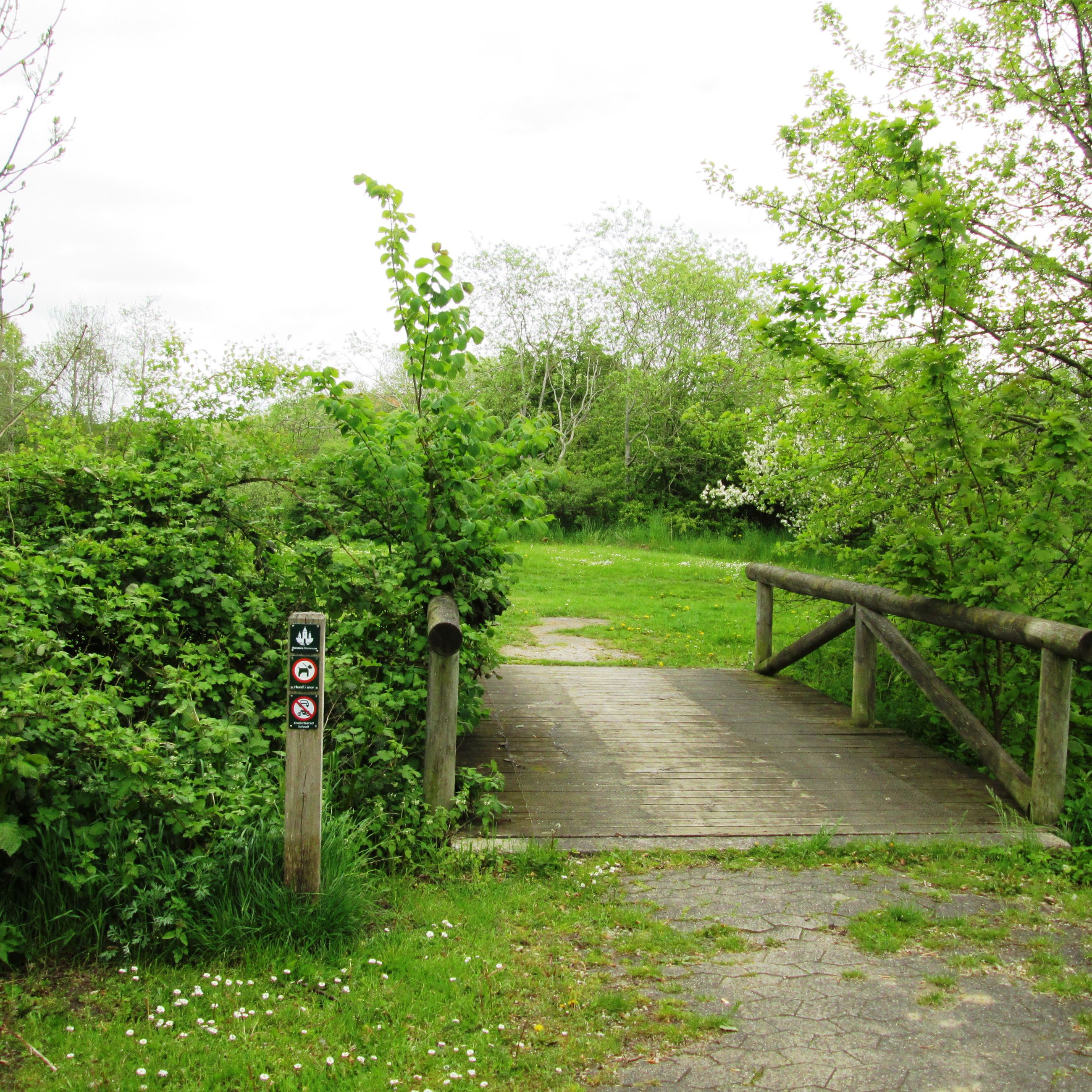 Endvidere går der en sti tværs over dalen og bækken over den eksisterende stenkiste.