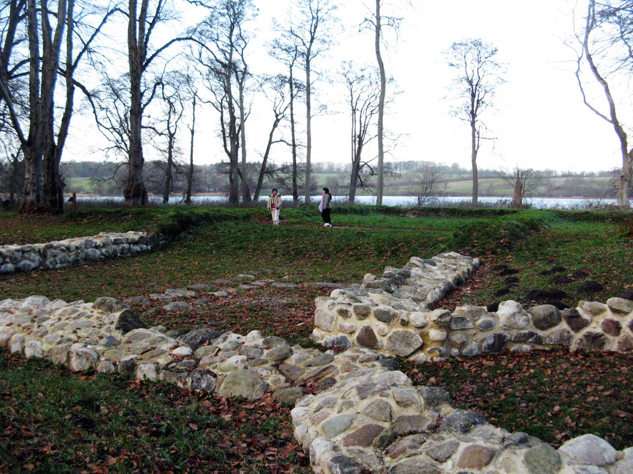 Det første Fussingø kan man danne sig et billede af på halvøen Gammelhave i Fussing Sø. Her ses et grundrids af borgen som et fundament til en bygning med fire tårne. Parken er anlagt med tre parallelle lindealleer og længst mod øst en spejldam.