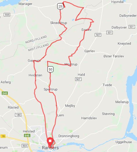Startkoordinater i Google Maps: 56.549921, 10.001958