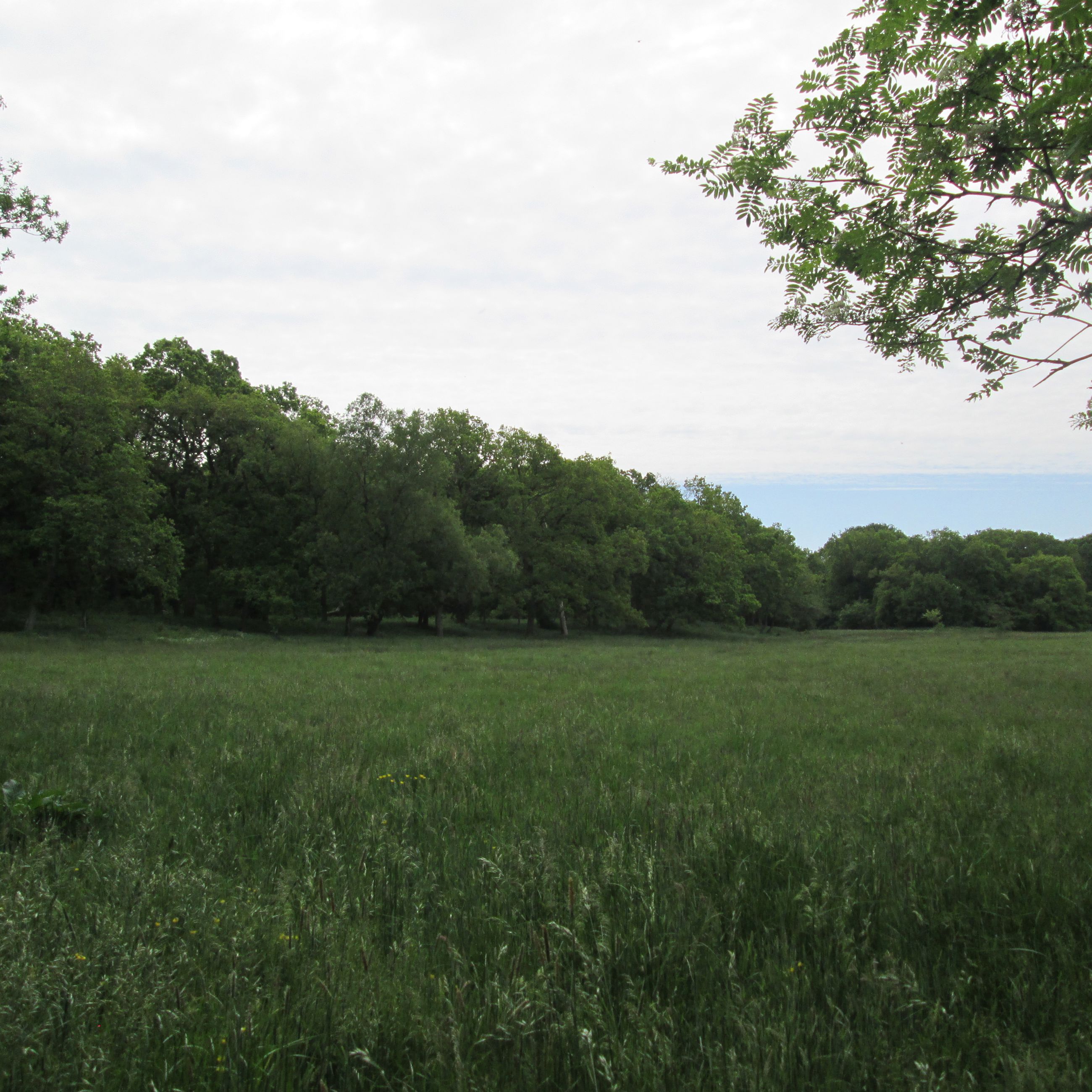 Fra skovbrynet og ned mod Gudenå ejer fonden et engareal på ca. 3,5 hektar, der skaber en flot overgang mellem skoven og åen - og giver udsigt til den tidligere ejer af egeskoven; Løjstrup Hovedgård. Den gamle Pramdragersti mellem Randers og Silkeborg løber langs skovbrynet.