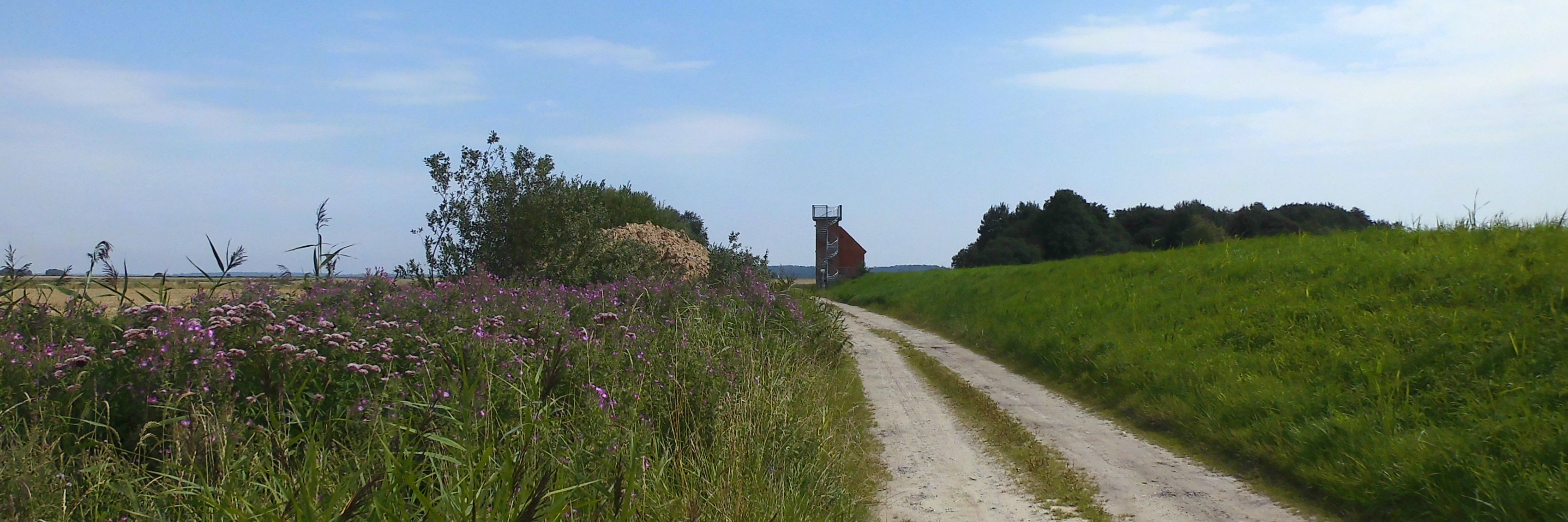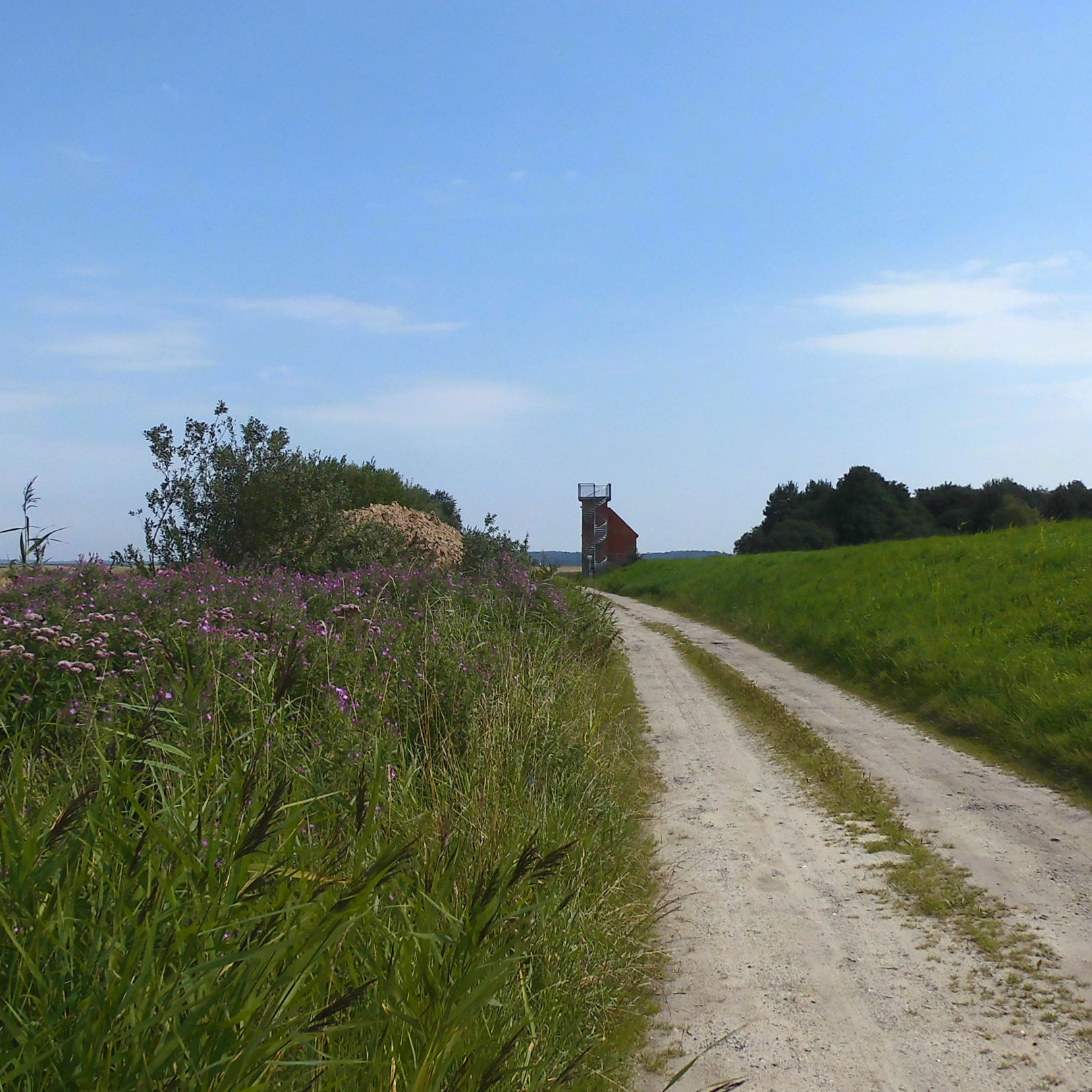 Kig ud en tidlig morgen, hvor tågen hænger over de lave enge. Måske et fragtskib sejler ud fra Randers i det første morgenlys. Sporet rundt om Øster Tørslev Kær er ca. 4 kilometer langt. God tur!