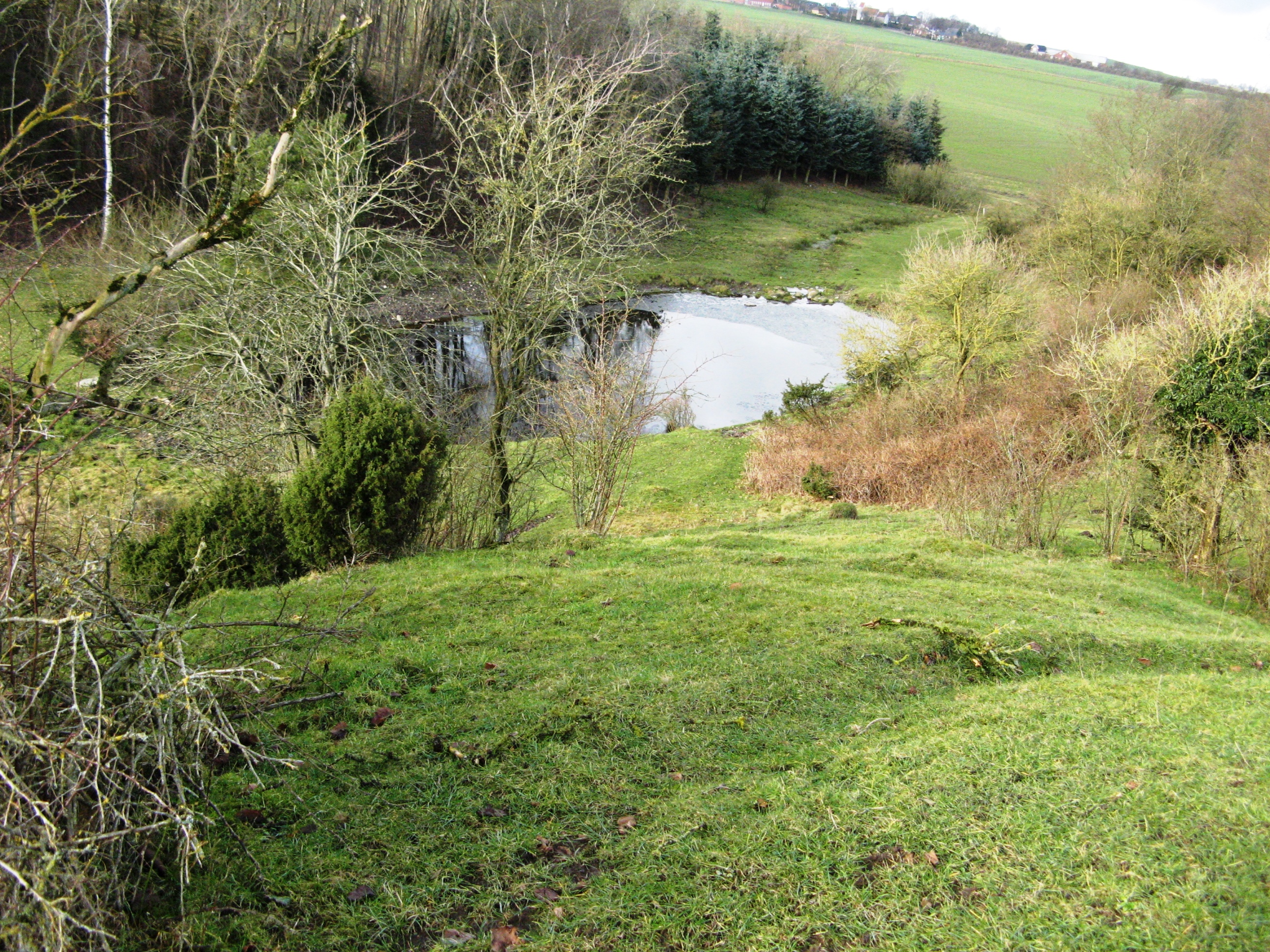 Med et vandhul ved en lille bæk er gjort et forsøg på naturgenopretning. Søen, som i det kuperede landskab ligner en lille bjergsø i Alperne, har stor betydning som levested og spredningsvej. Efter anlæg har den i store træk fået lov til at passe sig selv. (4)