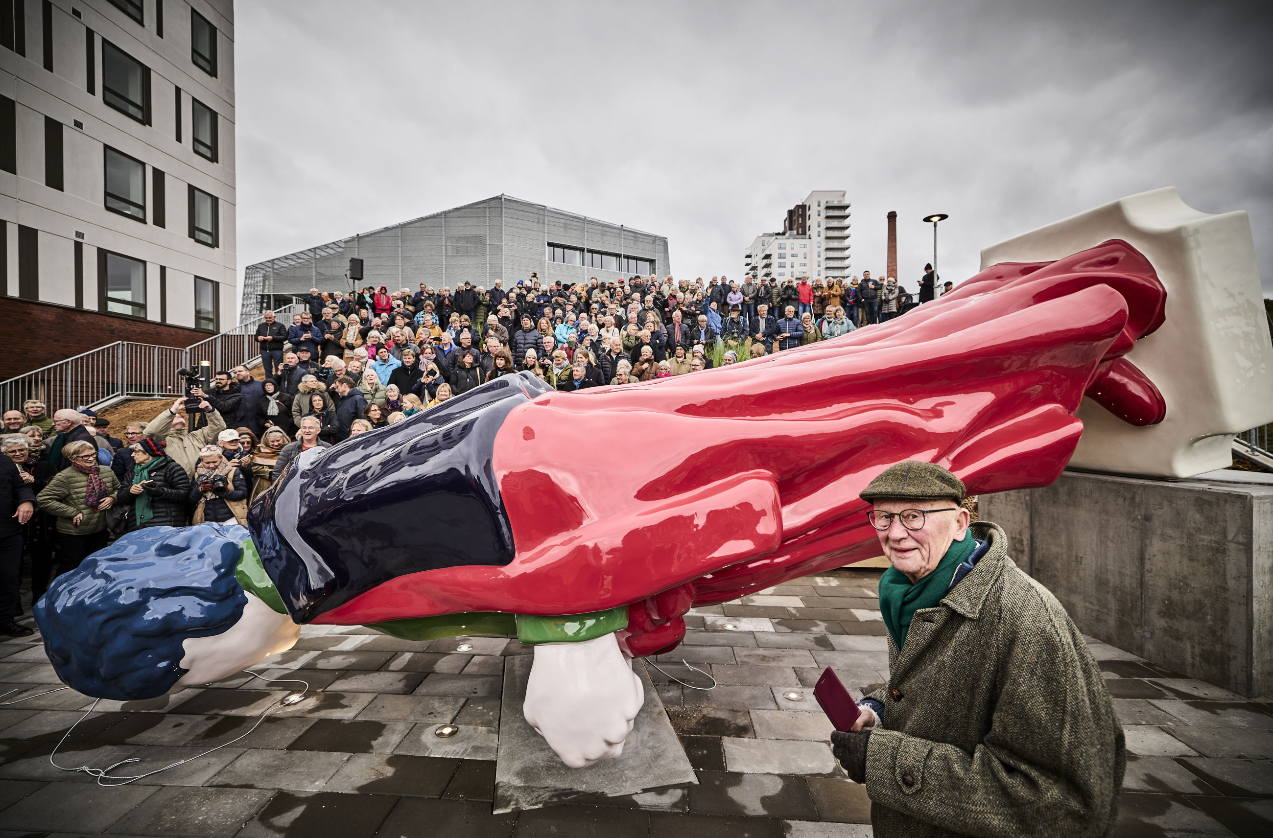 Med en totalvægt på næsten otte tons og en længde på otte meter er det i mere end en forstand et exceptionelt kunstværk, der pryder trappen ved Thors Bakke.