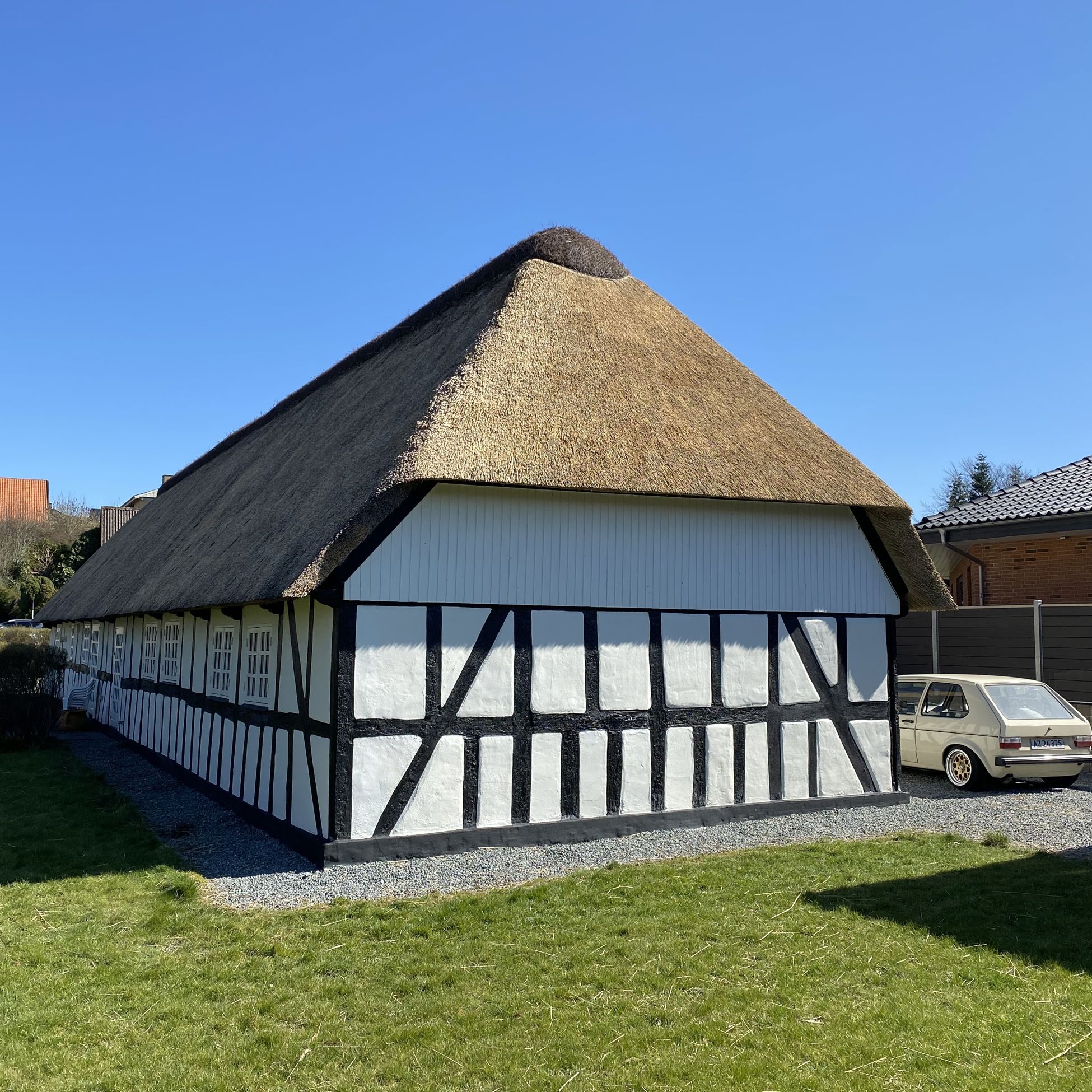 Ejer har anvendt rør fra Randers Fjord og lyngmønning, som begge er en stedstypiske løsninger.