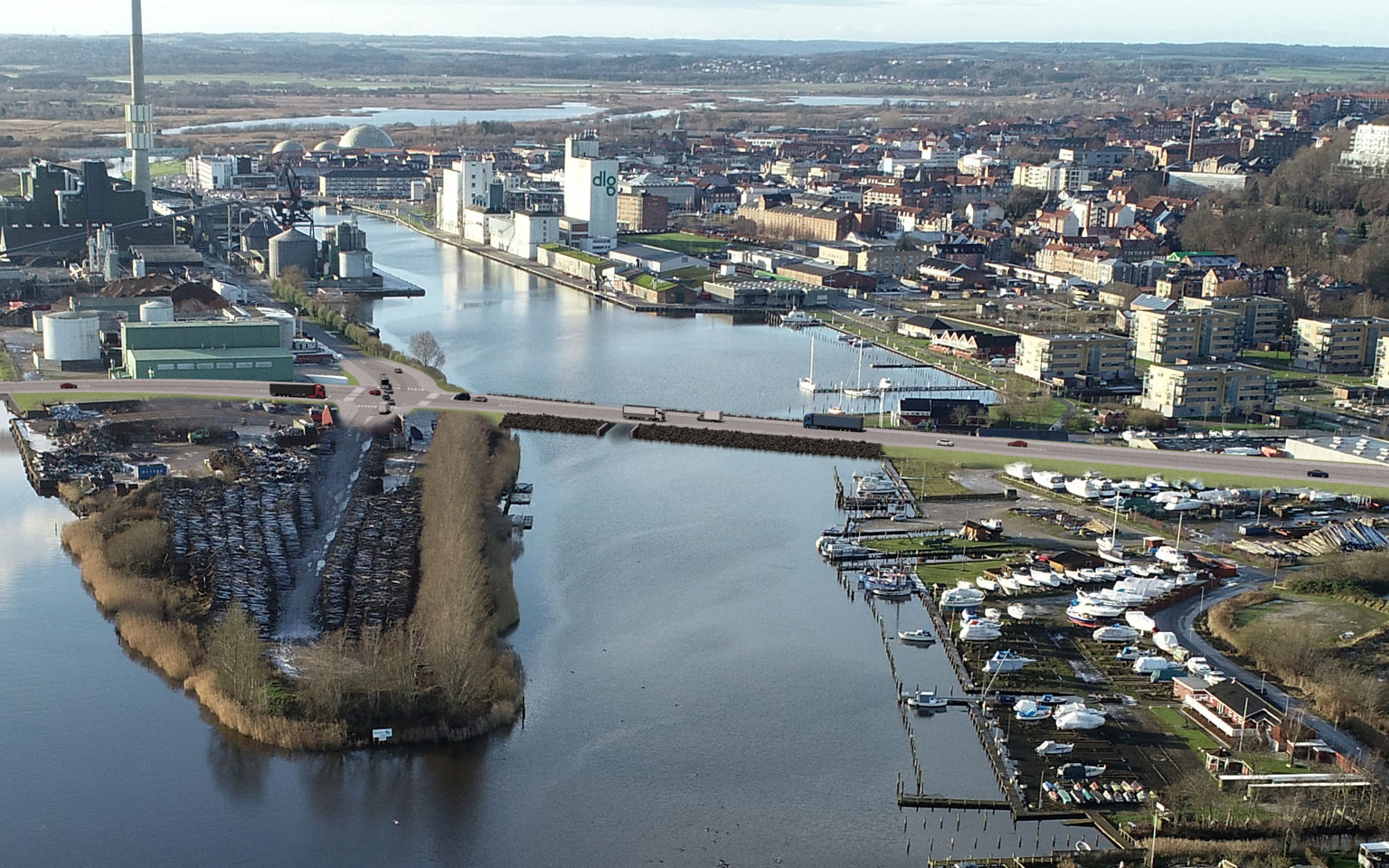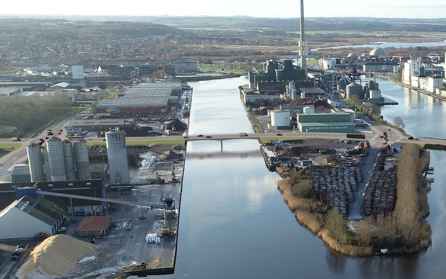 Klimabroen bliver byens nye forbindelse over Randers Fjord. Den kommer til at bestå af en bro over fjorden, en dæmning over det nordlige havnebassin og en ny vej på nord- og sydsiden.